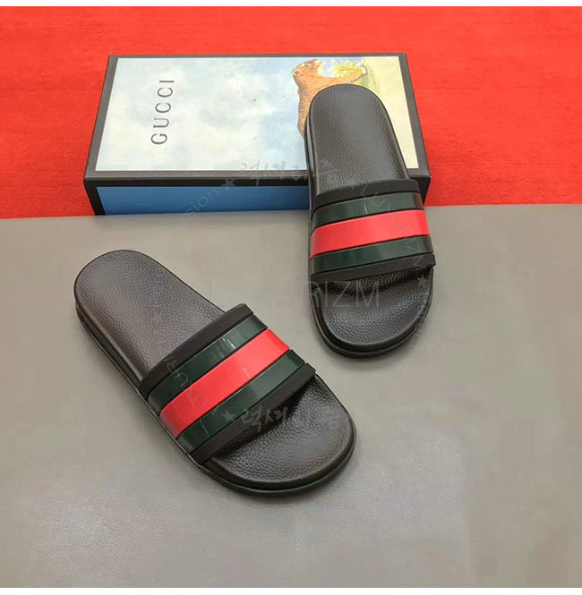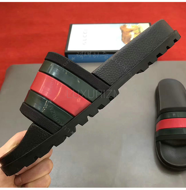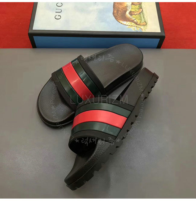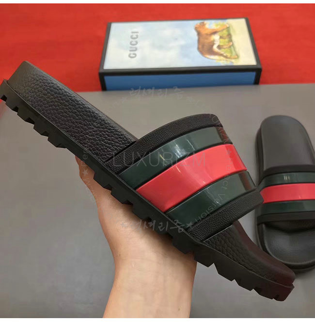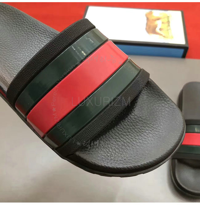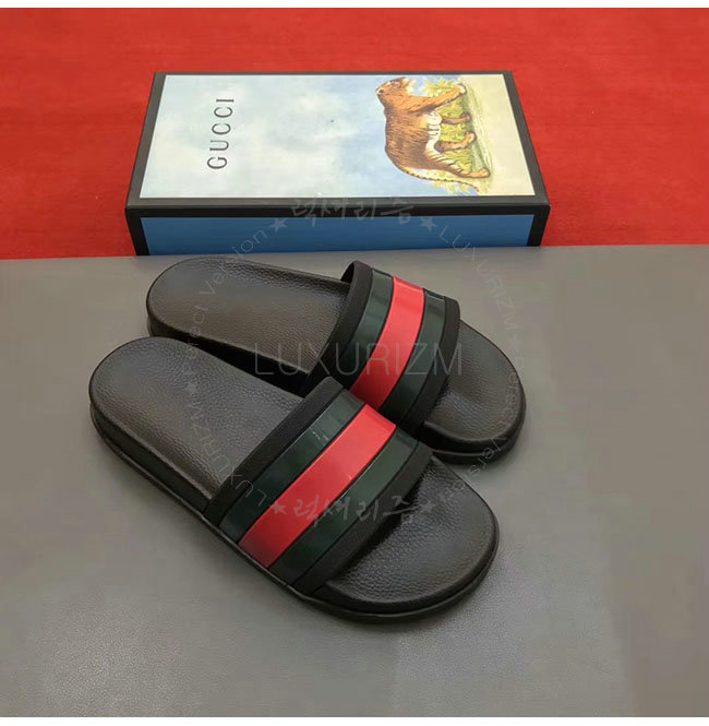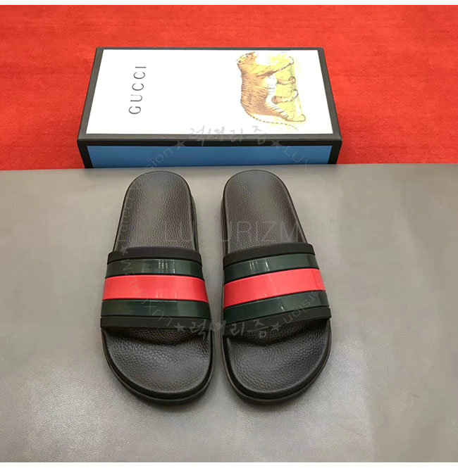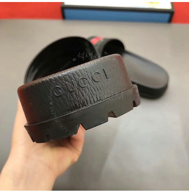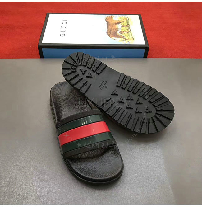 GUCCI-429469 1098 구찌 웹 디테일으 슬라이드 블랙 샌들 남성용