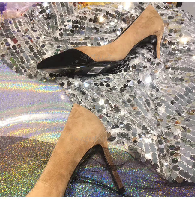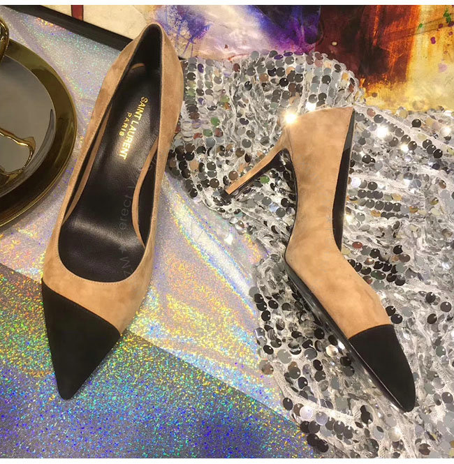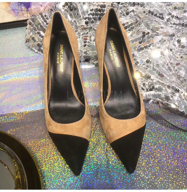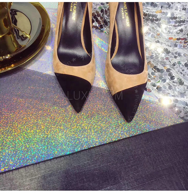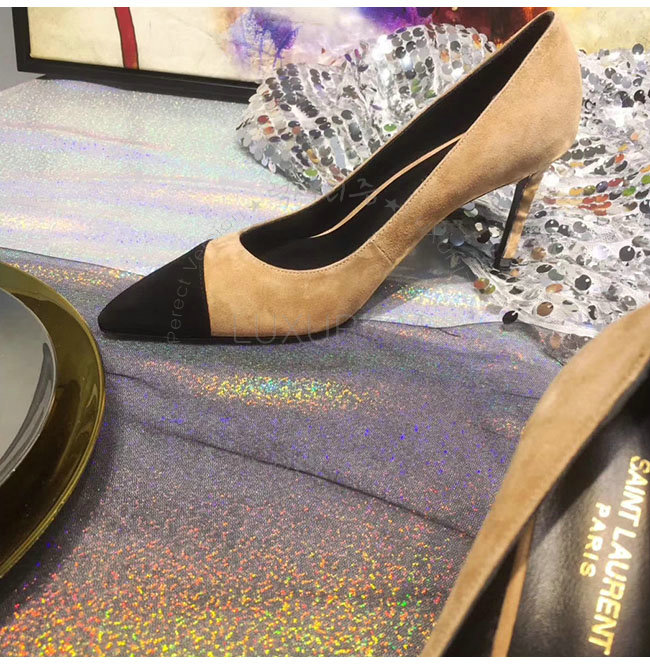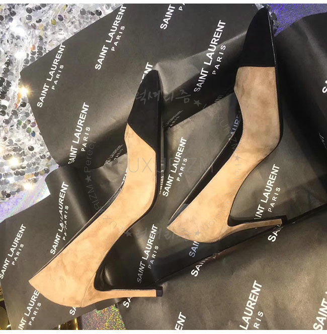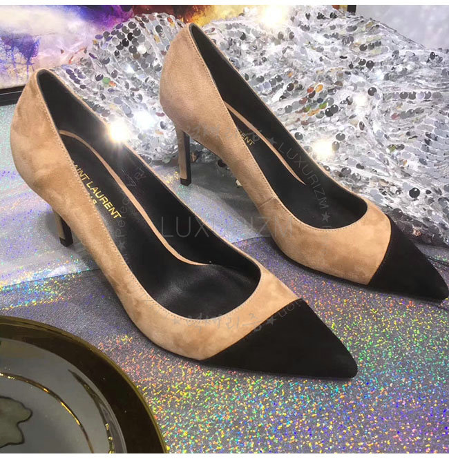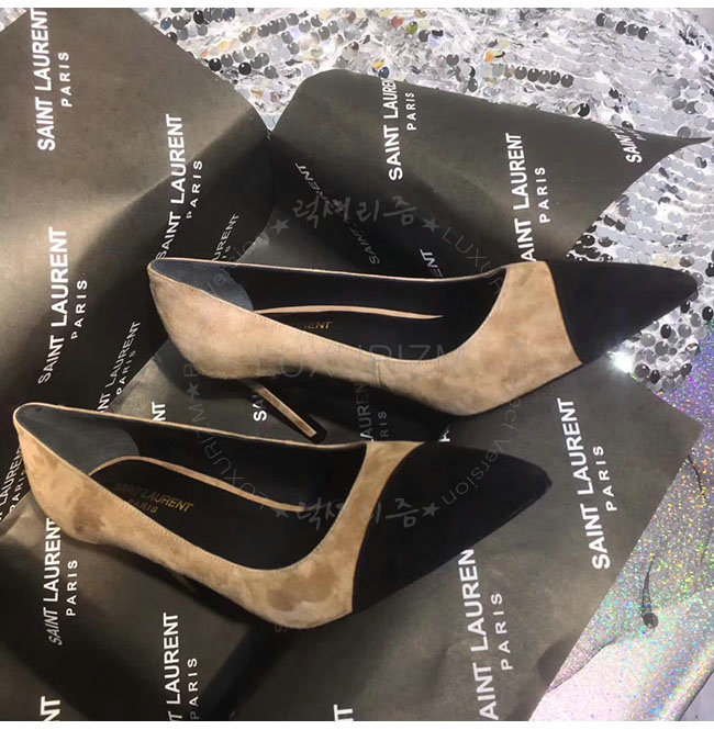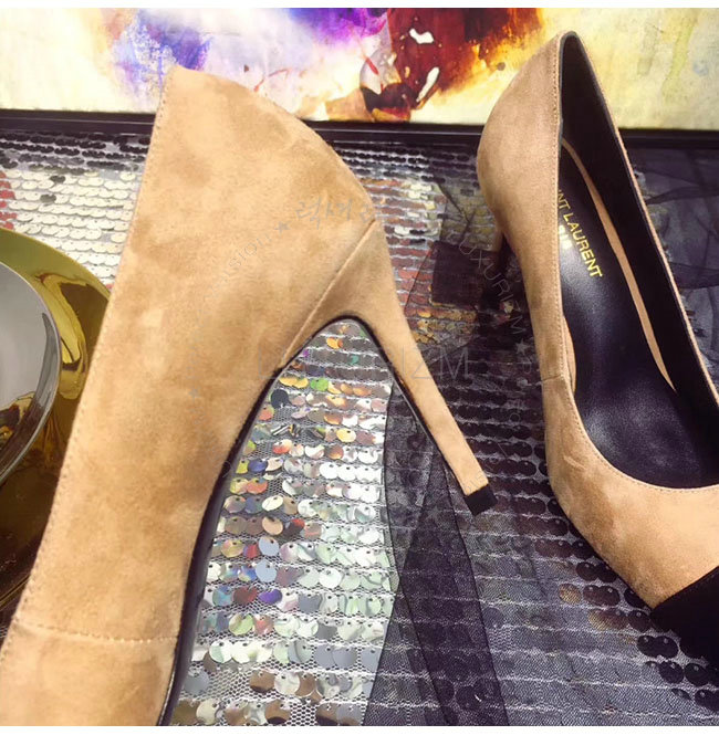SAINT LAURENT-500118 생로랑 앤자 베이지 스웨이드 가죽 펌프스 여성용