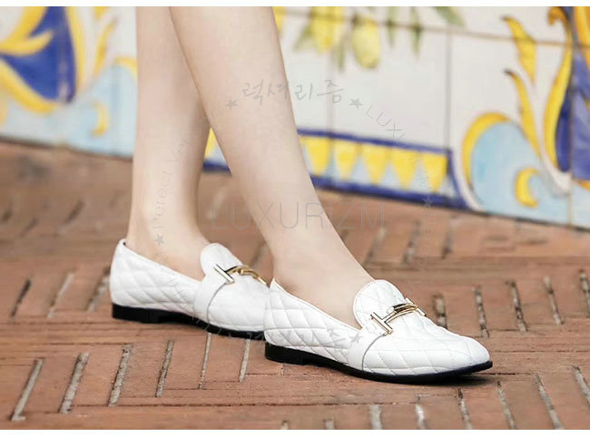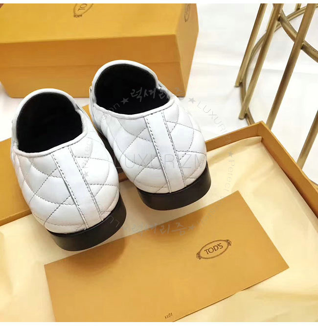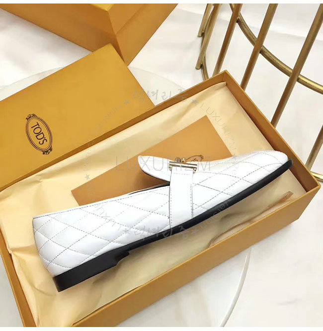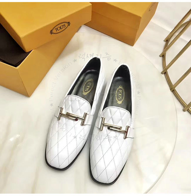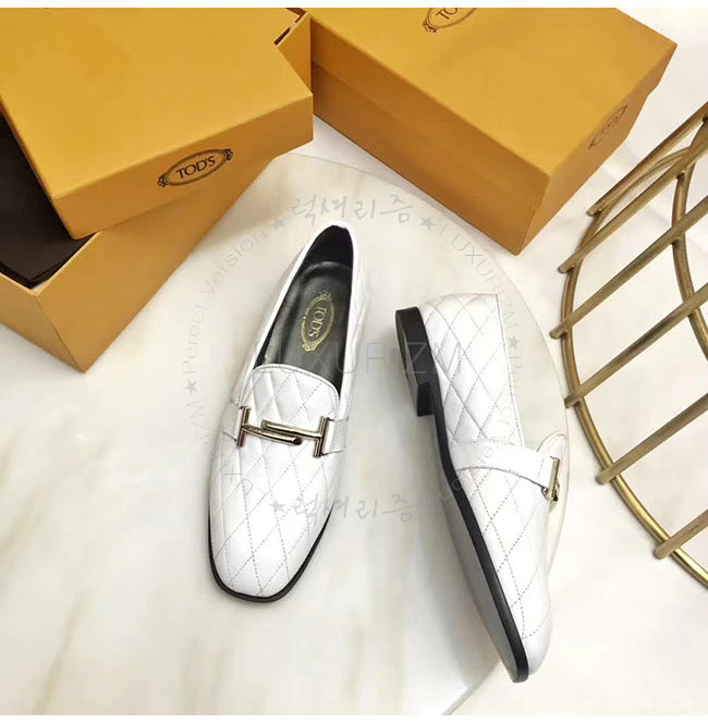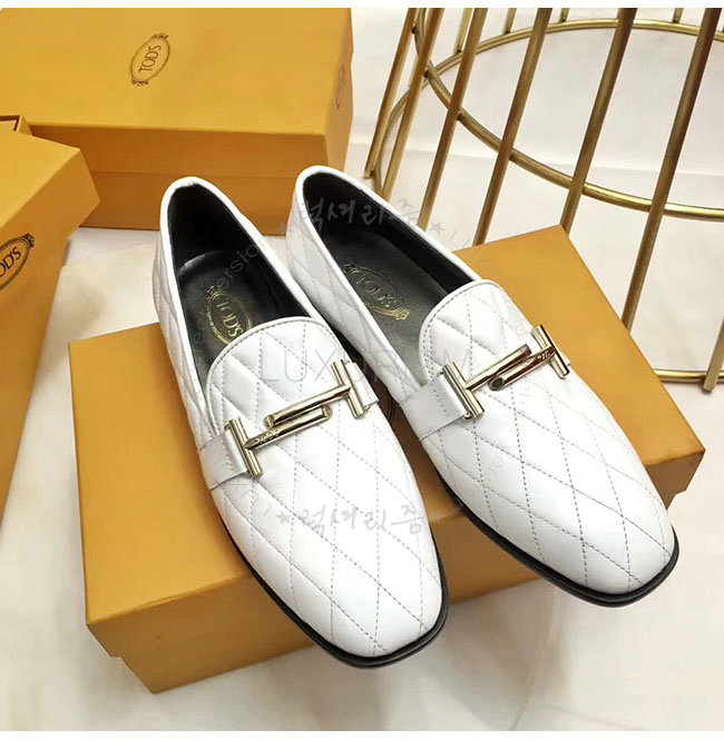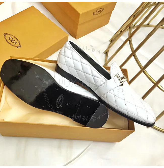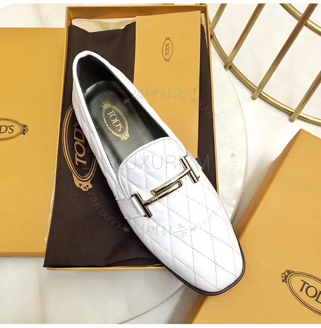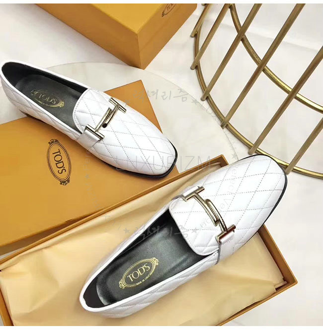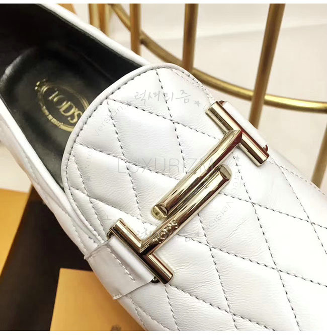 TODS-0ZZ0W230 토즈 화이트 가죽 더블티 메탈 클램프 모카신 여성용