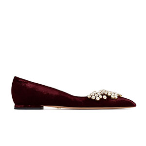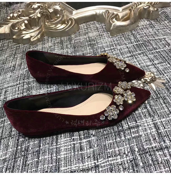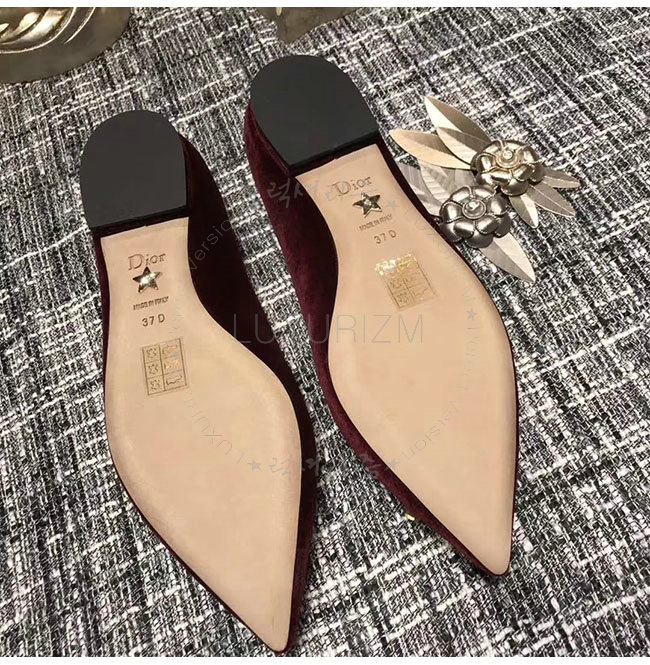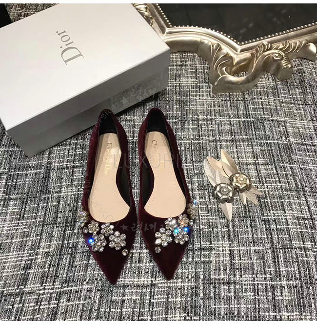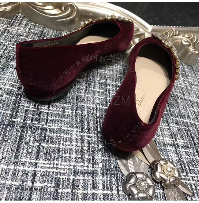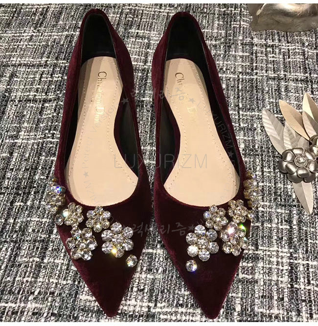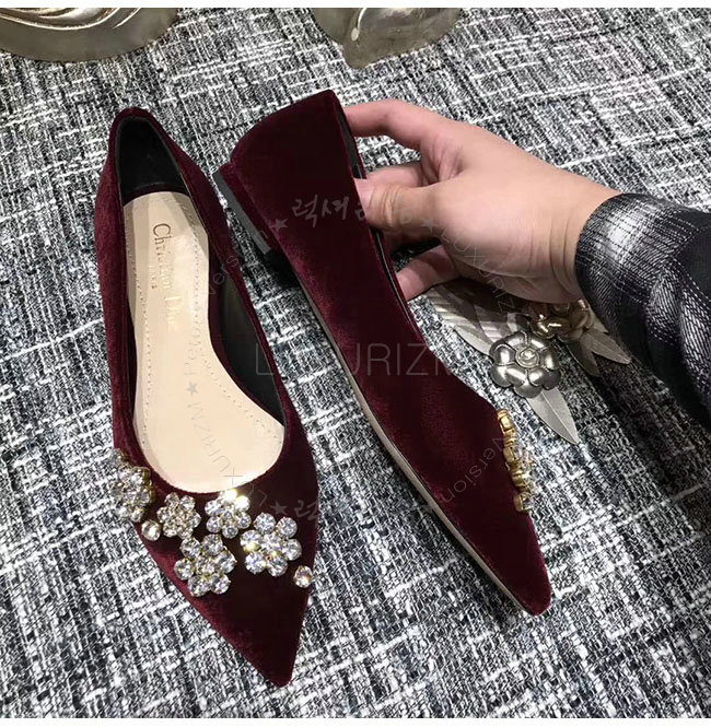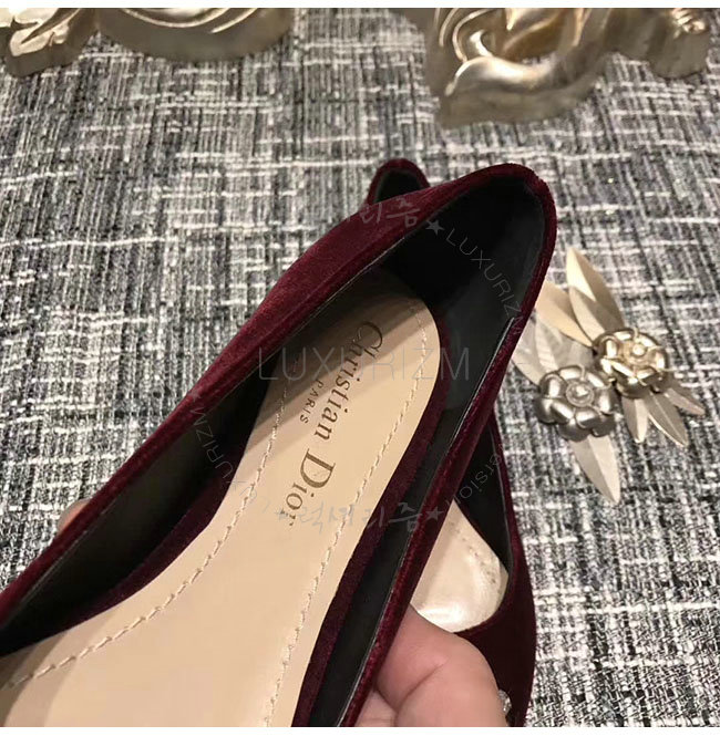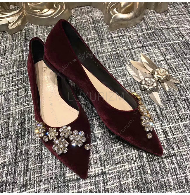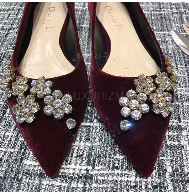 DIOR-KCB405 디올 버건디 벨벳 라인스톤 펌프스 여성용