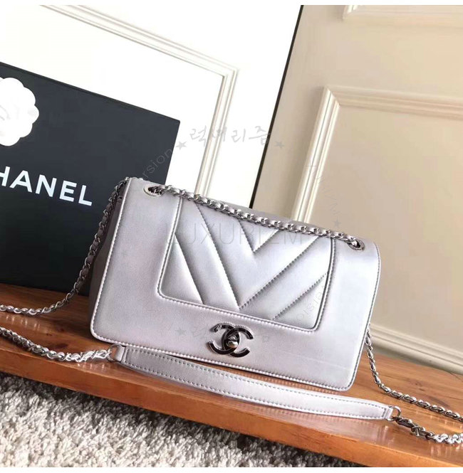 [스페셜오더]CHANEL-A93085 샤넬 메탈릭 쉽스킨 실버 메탈 실버 플랩 백
