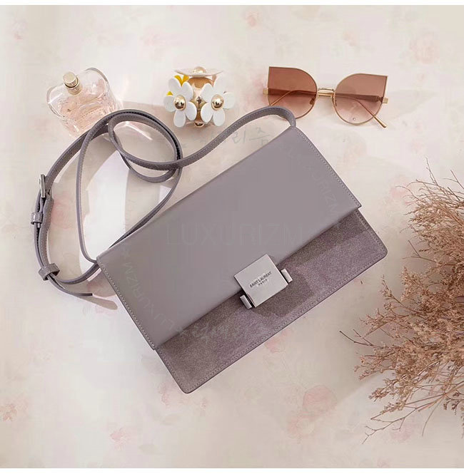 [스페셜오더]SAINT LAURENT-482044 생 로랑 미디엄 벨샤스 그레이 가죽 스웨이드 은장 숄더백