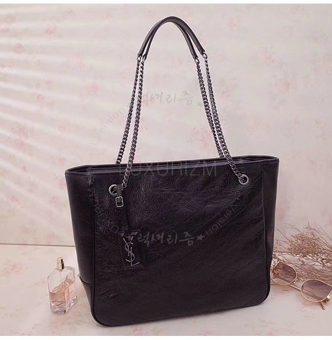 [스페셜오더]SAINT LAURENT-504867 생 로랑 블랙 송아지가죽 빈티지 라지 니키 쇼핑백