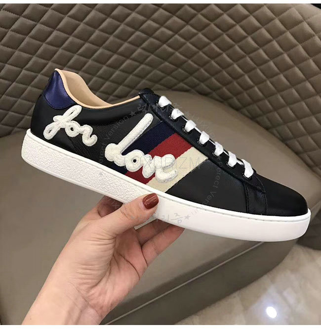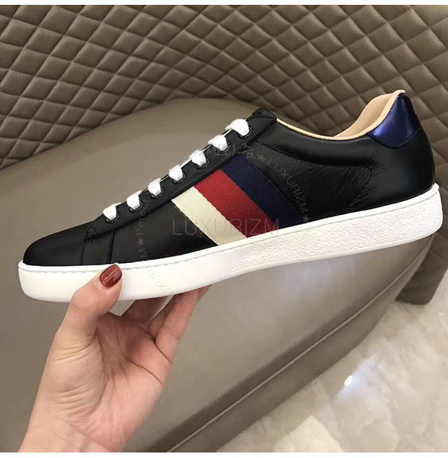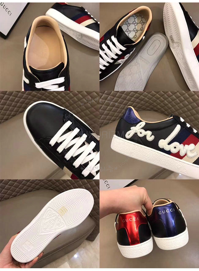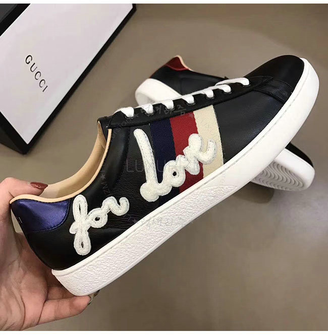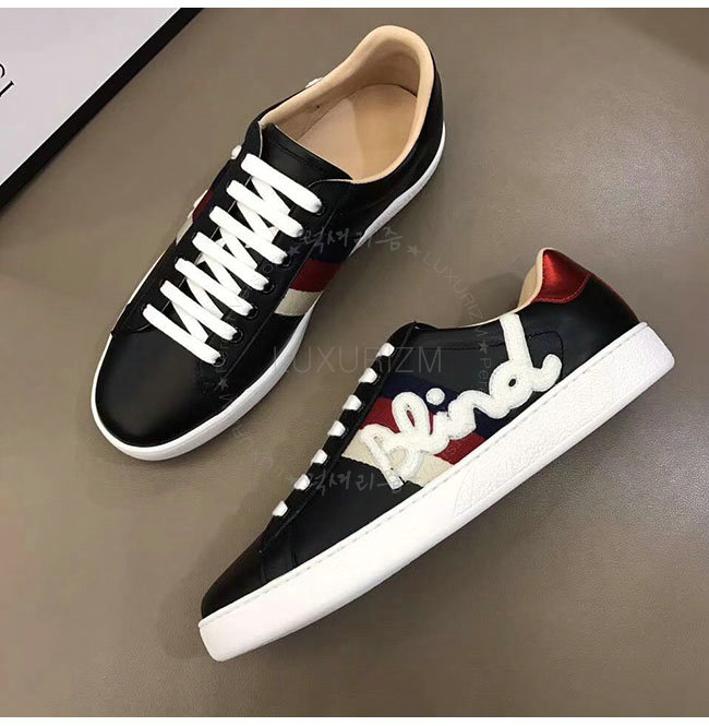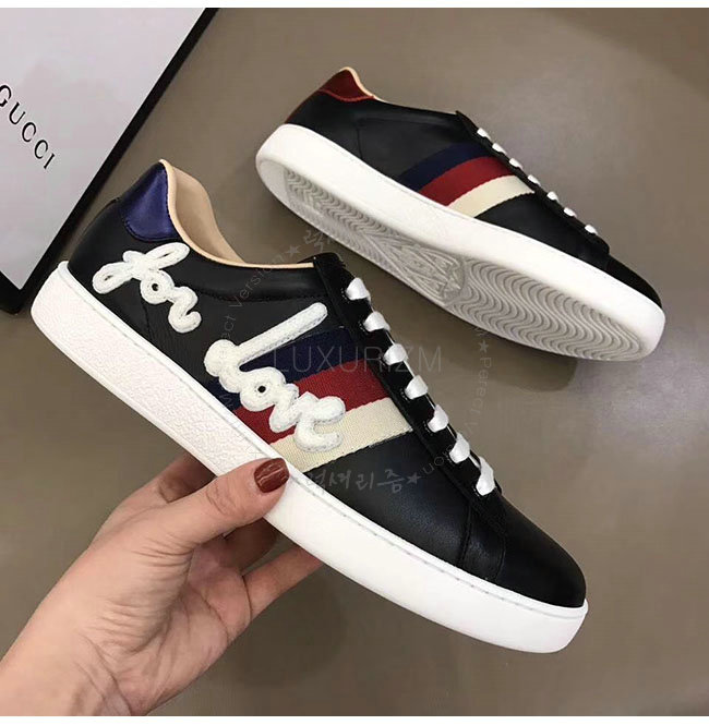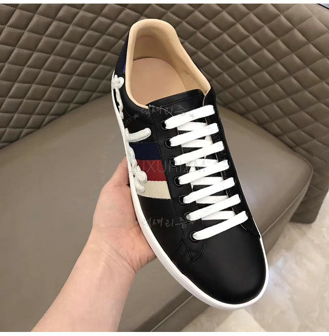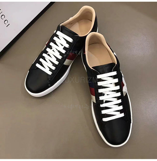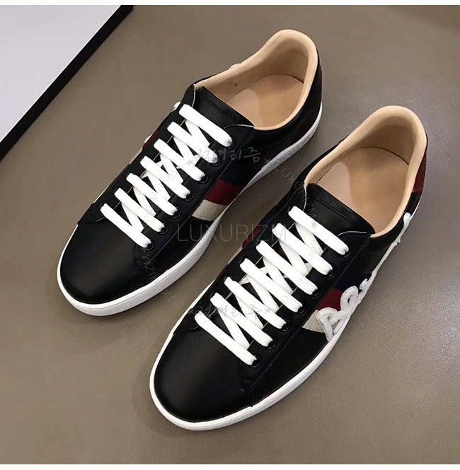GUCCI-497276 1060 구찌 엠브로이더 블랙 가죽 로우탑 스니커즈 남성용