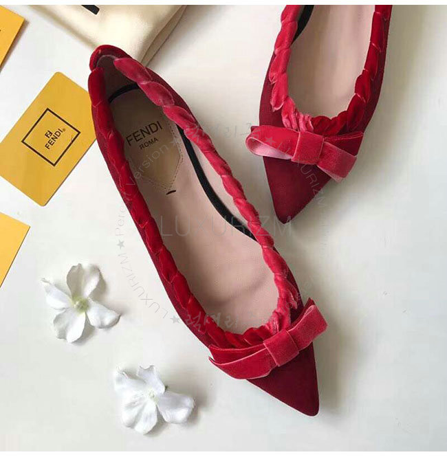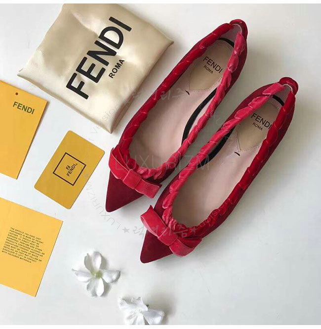 FENDI-8F6601 펜디 오베르진 레드 스웨이드 가죽 발레리나 여성용