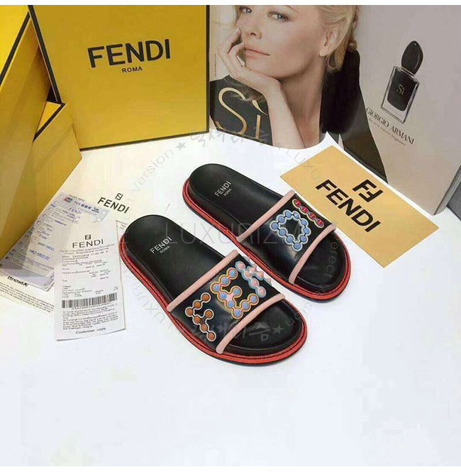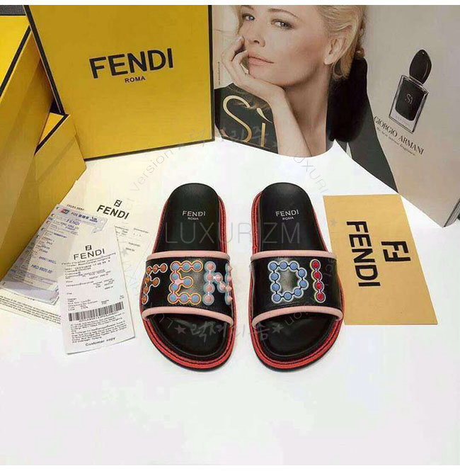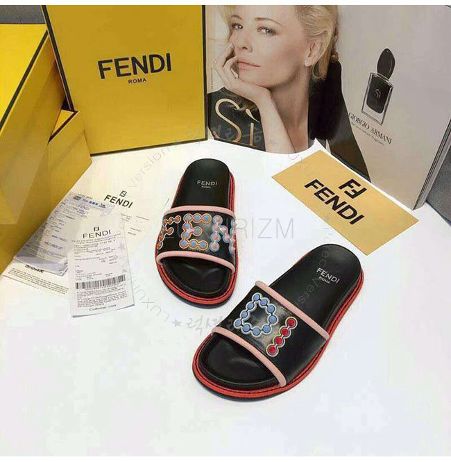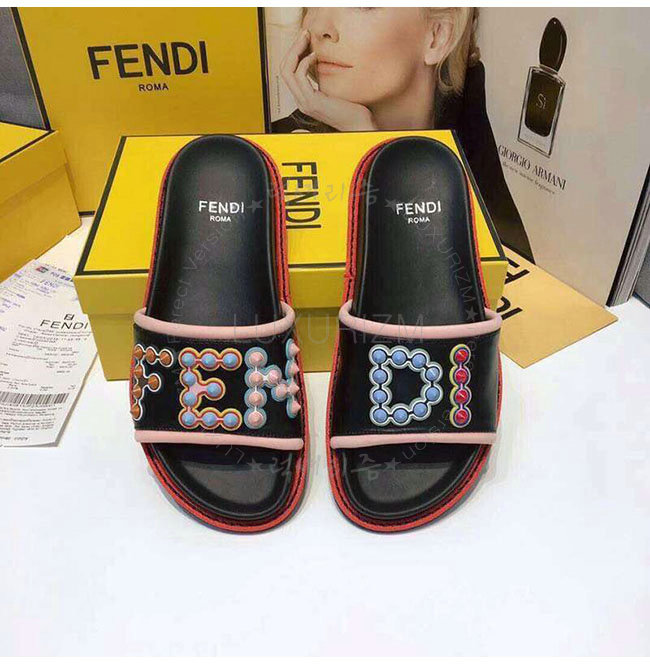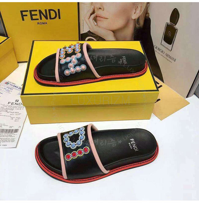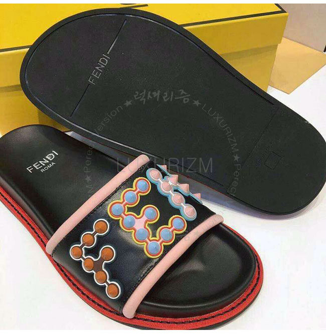 FENDI-8X6669 펜디 블랙 가죽 슬라이드 샌들 여성용