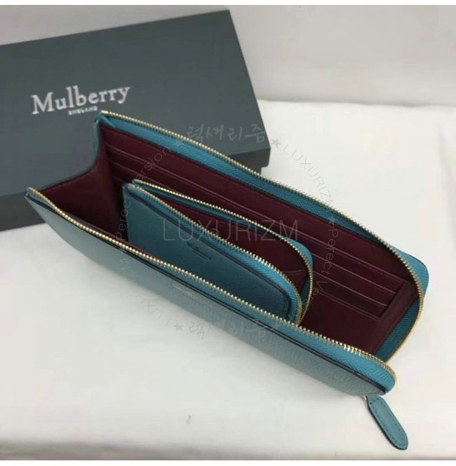 [스페셜오더]MULBERRY-RL5284 멀버리 송아지 가죽 앤틱 블루 반지퍼 장지갑