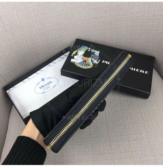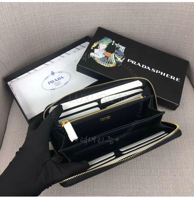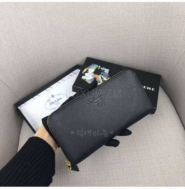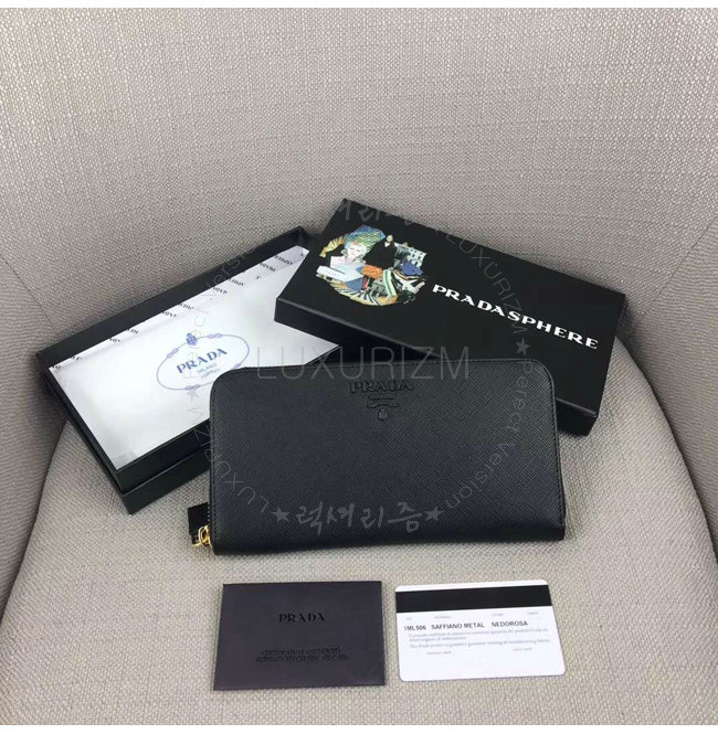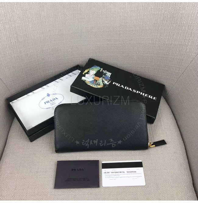[스페셜오더]PRADA-1ML506 프라다 사피아노 가죽 블랙 지퍼 지갑