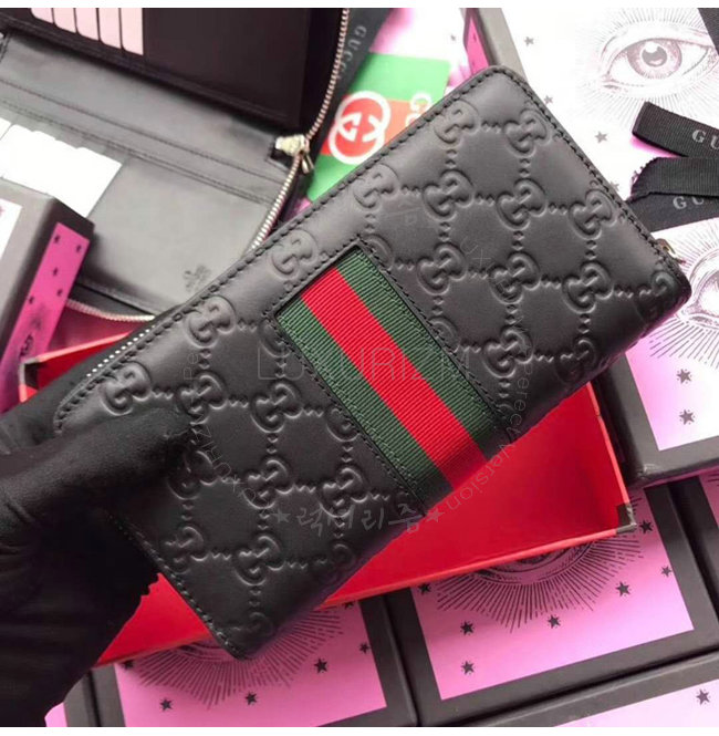 #구찌레플리카 구찌지갑 남성지갑쇼핑몰추천 럭셔리즘 [스페셜오더]GUCCI-459138 1060 구찌 Gucci 시그니처 가죽 Web 디테일 블랙 지퍼 지갑