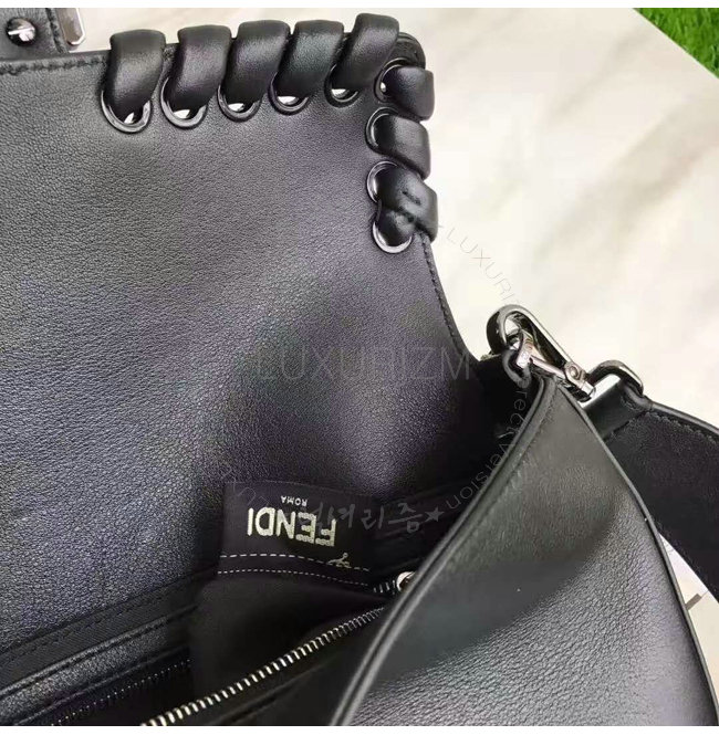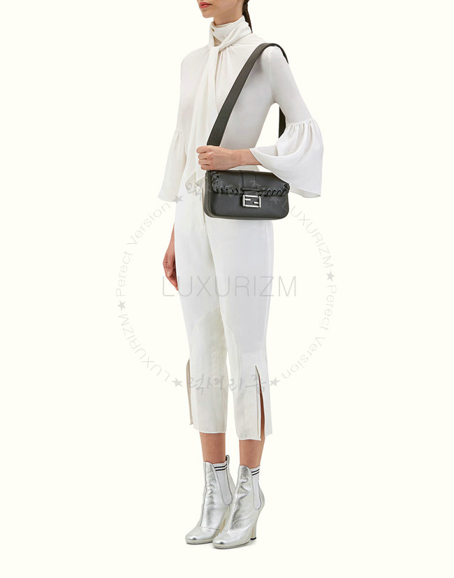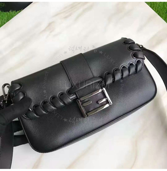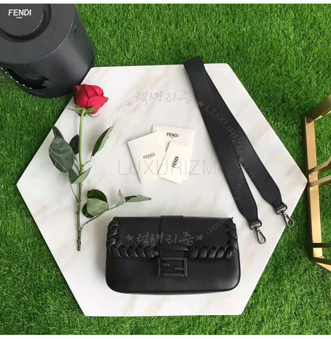 [스페셜오더]FENDI-8BR6008 펜디 송아지 가죽 톤온톤 위브 장식 블랙 바게트 백