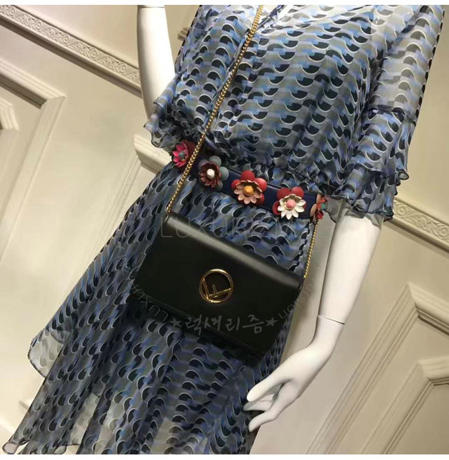 [스페셜오더]FENDI-8BS004 펜디 송아지 가죽 F IS FENDI 주얼 아플리케 장식 블랙 체인 지갑