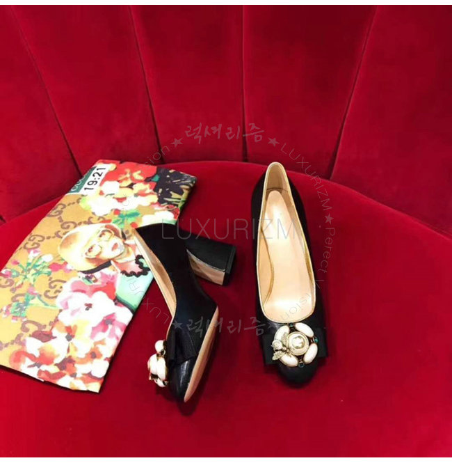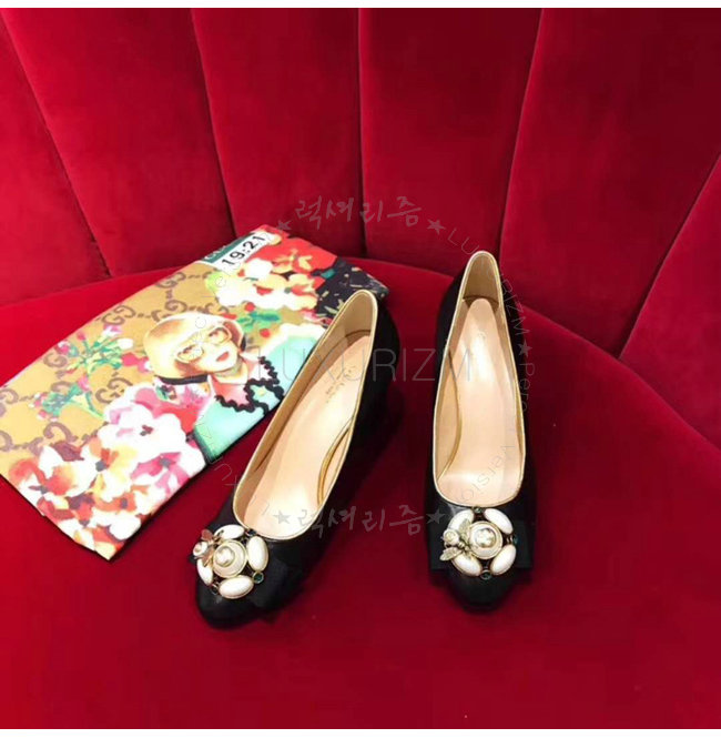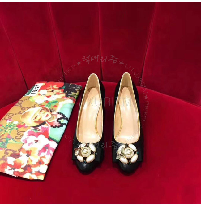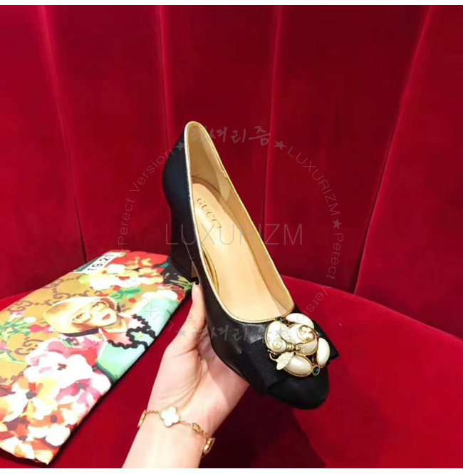 [스페셜오더]GUCCI-474483 1057 구찌 블랙 가죽 꿀벌 트리밍 펌프스