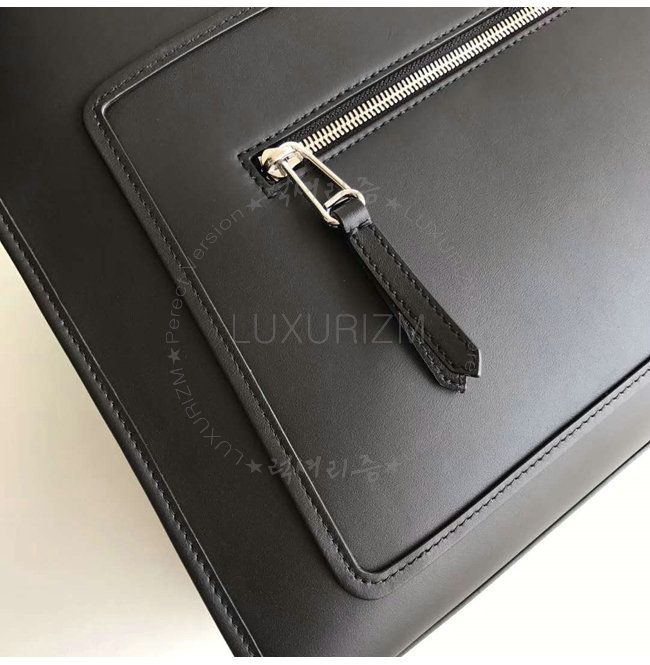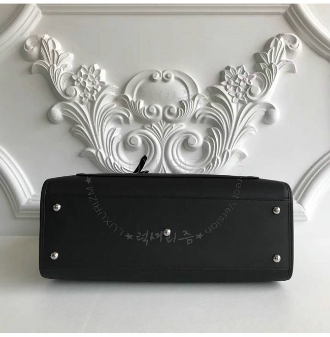 백.송아지 가죽 소재 블랙 컬러의 엣지 장식.팔라듐 피니싱이 믹스된 메탈장식.