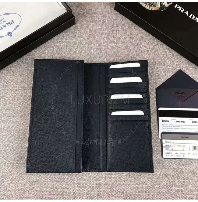 [스페셜오더]PRADA-2MV836 프라다 사피아노 가죽 메탈 로고 블랙 장지갑