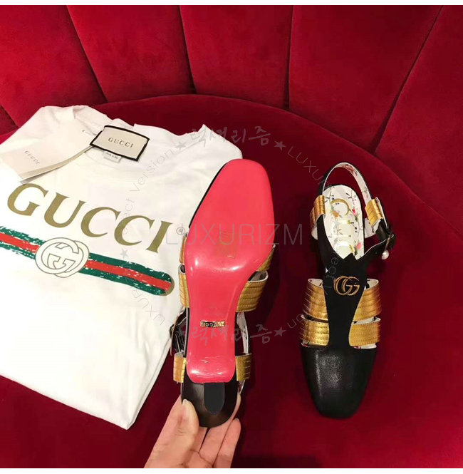 GUCCI-497485 1084 구찌 송아지 가죽 골드 힐 샌들