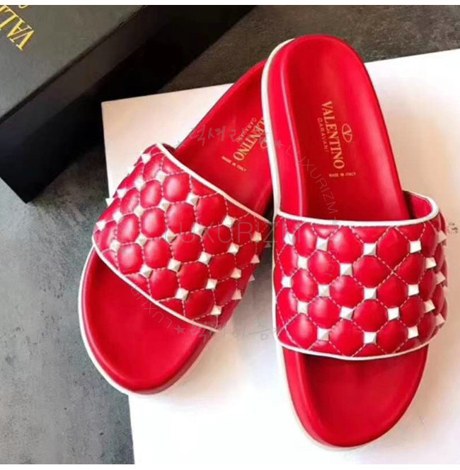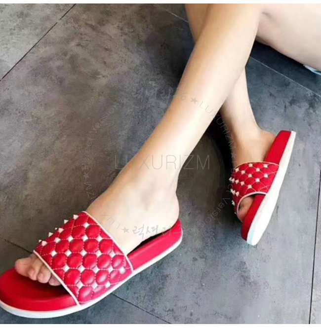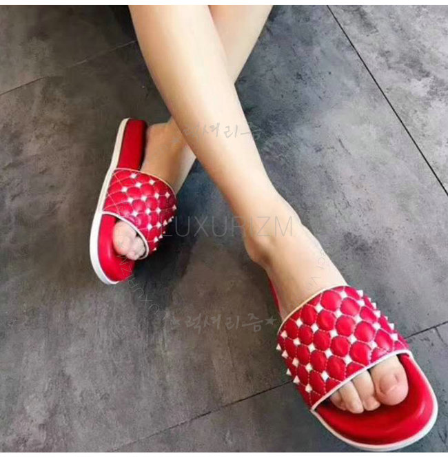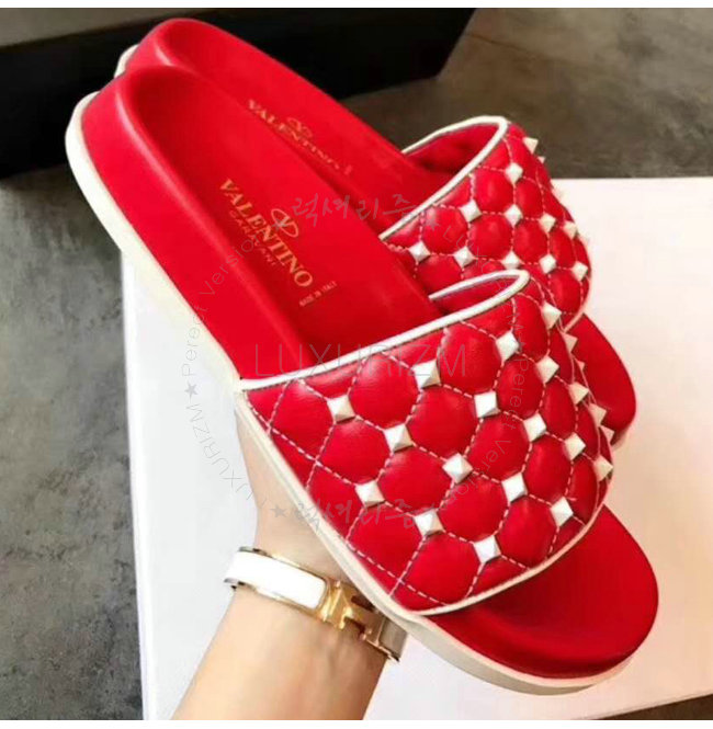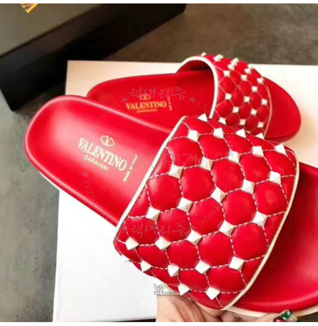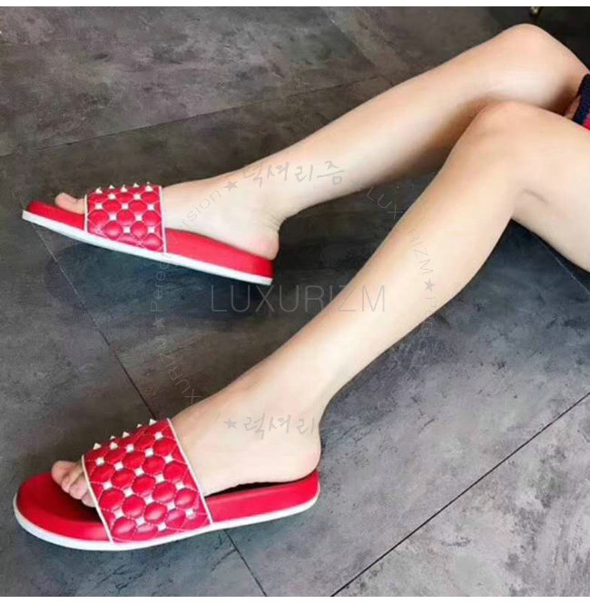 VALENTINO-PW2S0F01 발렌티노 레드 프리 락스터드 스파이크 슬라이드 샌들