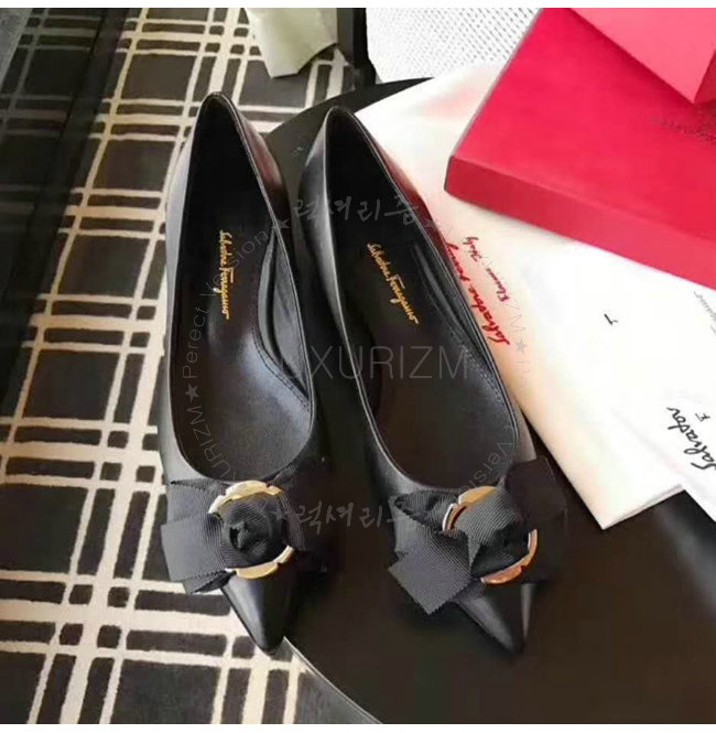 FERRAGAMO-01N263 페라가모 램스킨 작약꽃 디테일 블랙 펌프스