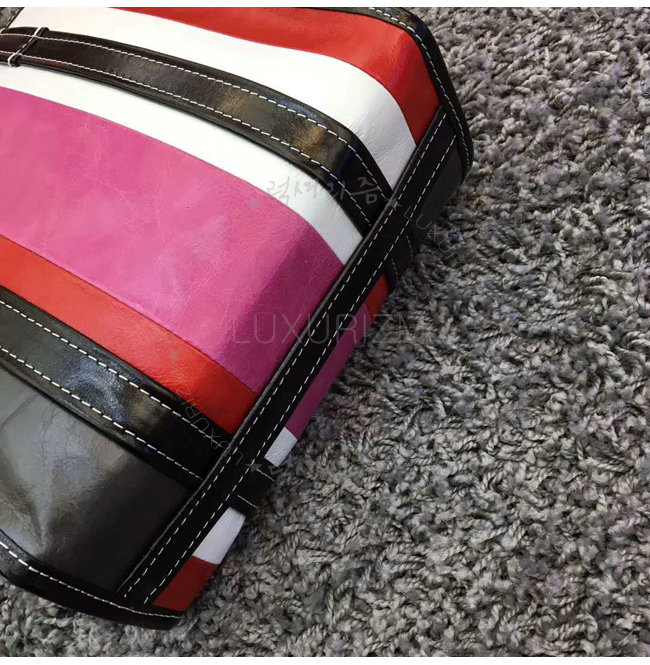 [스페셜오더]BALENCIAGA-443096 발렌시아가 스트라이프 아레나 가죽 로즈 오르텐시아 바자 쇼퍼 S 가격 : 410,000원