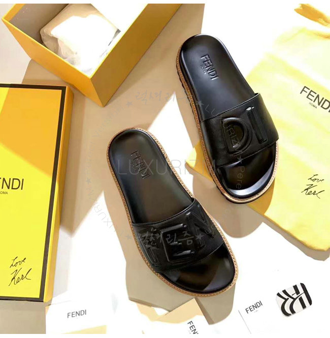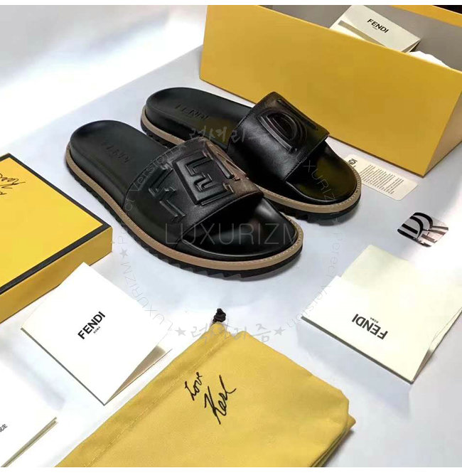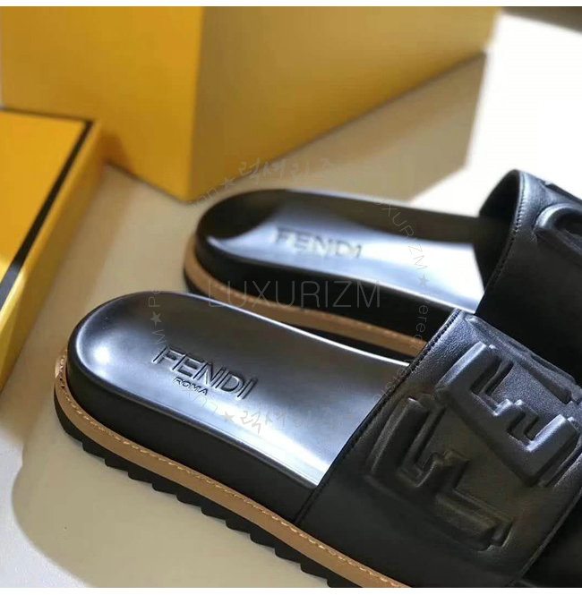 FENDI-7X1148 펜디 펜디 문구 장식 블랙 러버 슬라이드