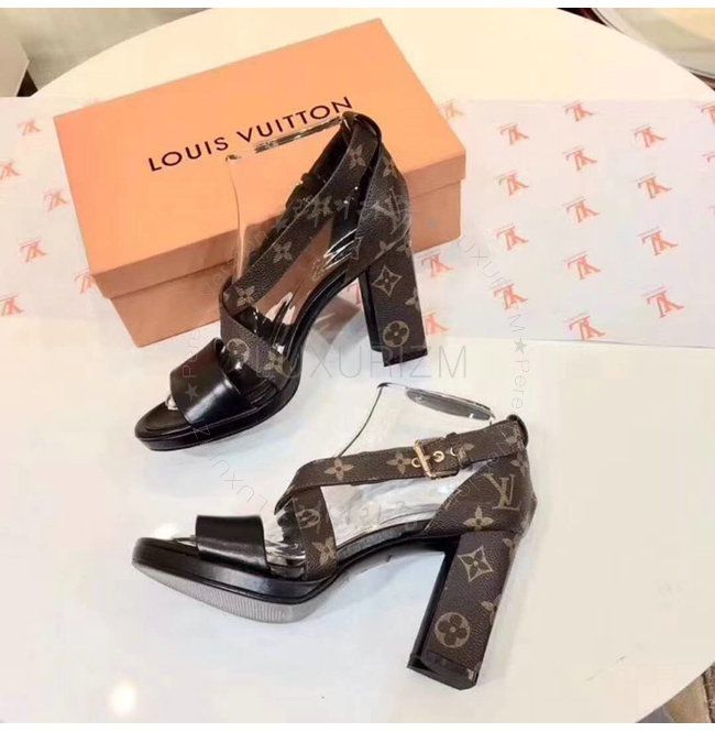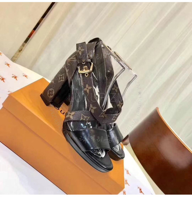 LOUIS VUITTON-1A3UQL 루이비통 모노그램 매치메이크 블랙 하이힐 크로스 샌들