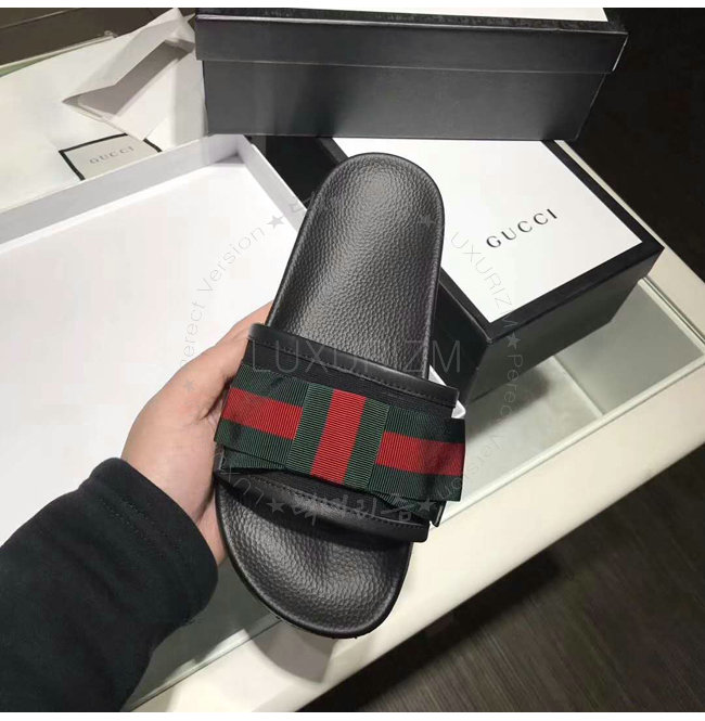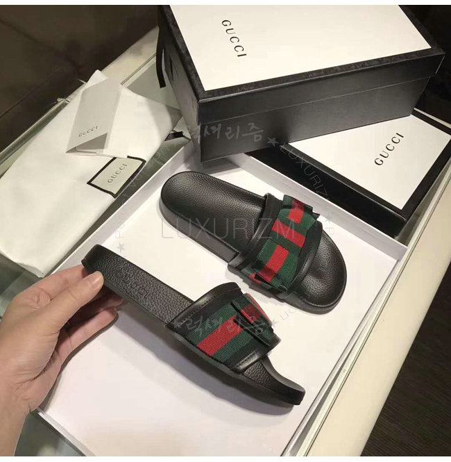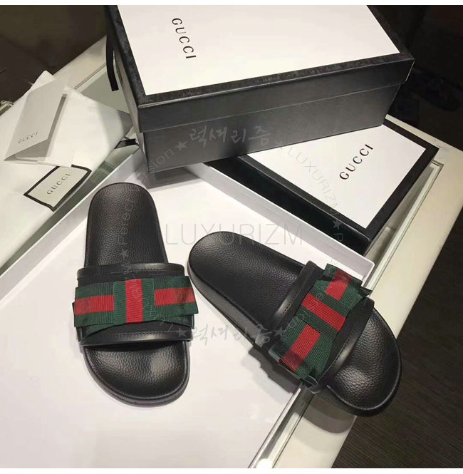 GUCCI-498316 1146 구찌 Web 보운 장식 블랙 슬라이드
