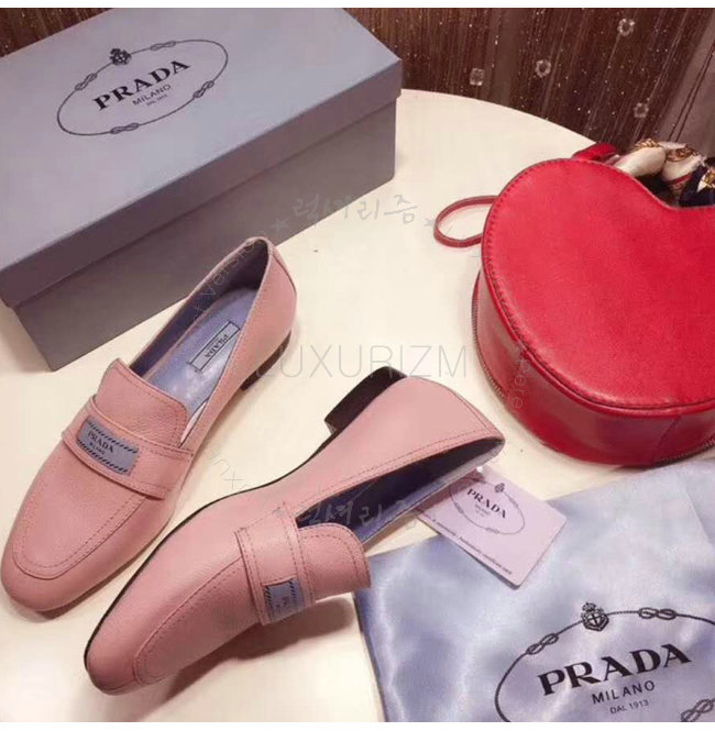 PRADA-1D485I 프라다 송아지 가죽 핑크 에티켓 모카신