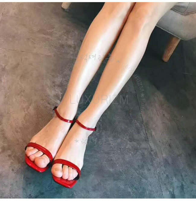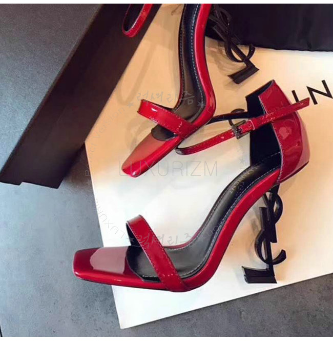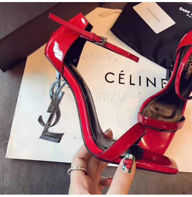 SAINT LAURENT-500250 생 로랑 송아지 가죽 메탈 YSL 모노그램 힐 레드 샌들