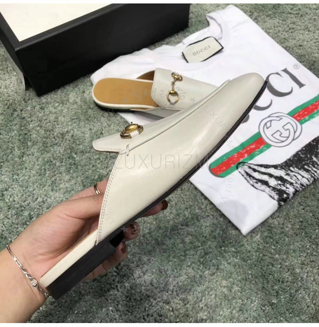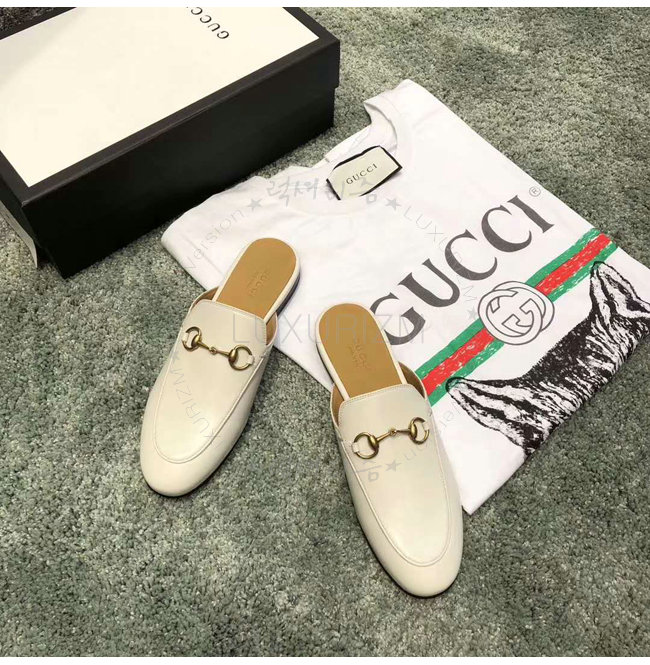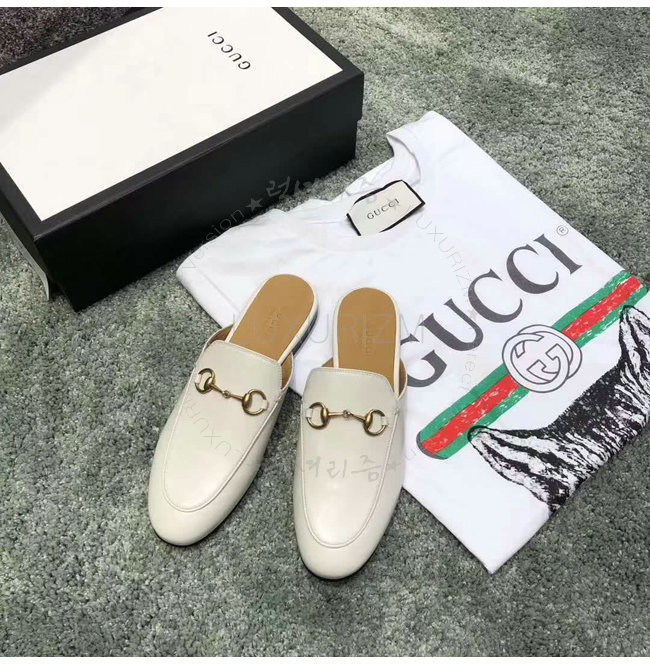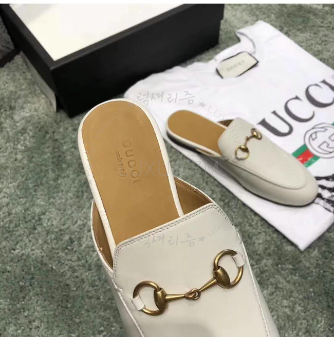 GUCCI-423513 9022 구찌 Princetown 화이트 가죽 슬리퍼