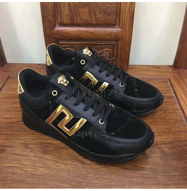 VERSACE-DSU5638 베르사체 송아지 가죽 블랙 GREEK KEY 스니커즈