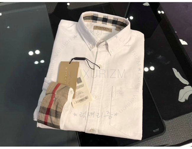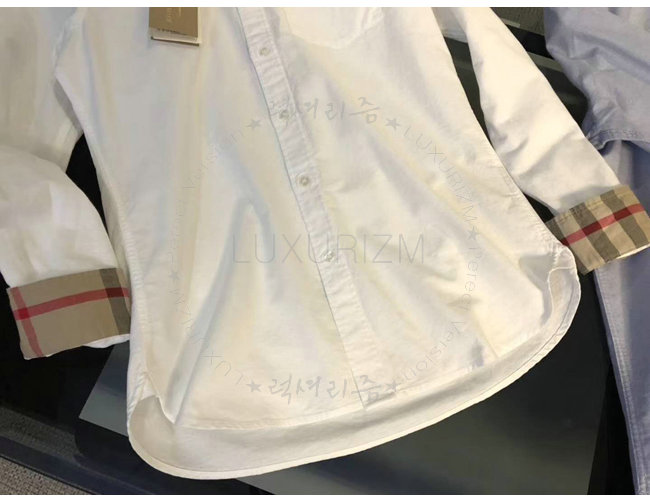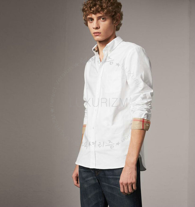 BURBERRY-39961141 버버리 체크 디테일 화이트 코튼 옥스퍼드 셔츠
