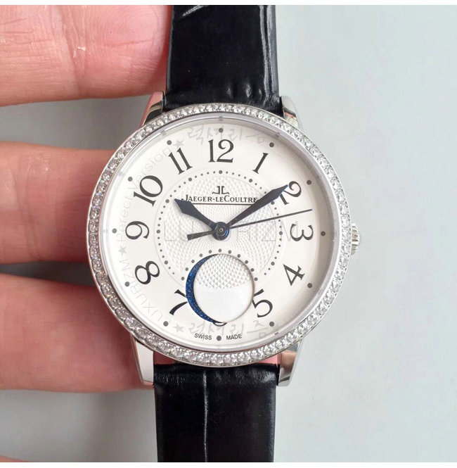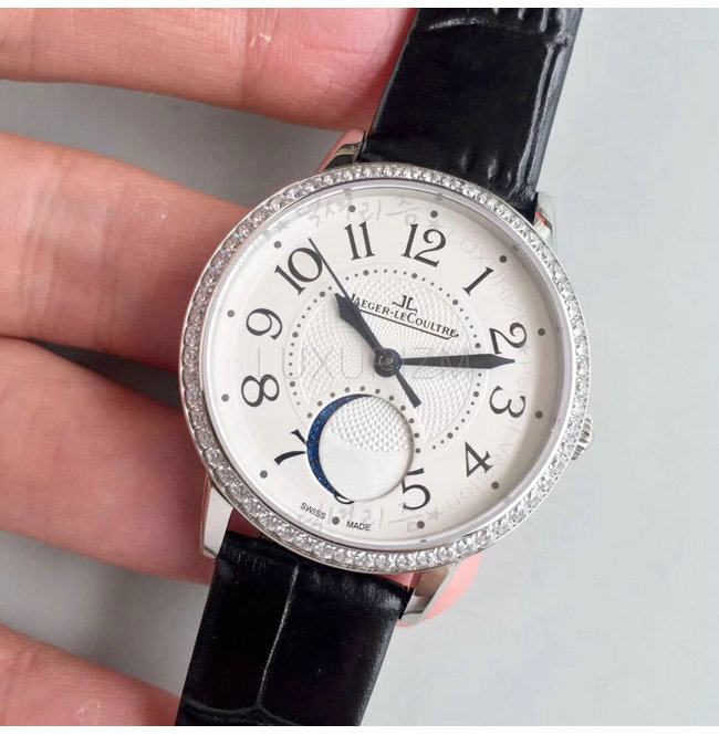 [스페셜오더]JAEGER LECOULTRE-예거 르쿨트르 랑데부 문 미디엄 다이아 스틸 레이디스 가죽스트랩 워치 34mm