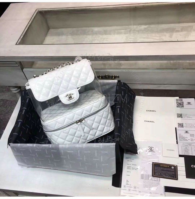 [스페셜오더]CHANEL-A57825 샤넬 크럼플드 카프스킨 실버 메탈 화이트 플랩 백