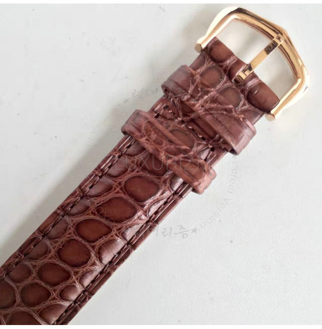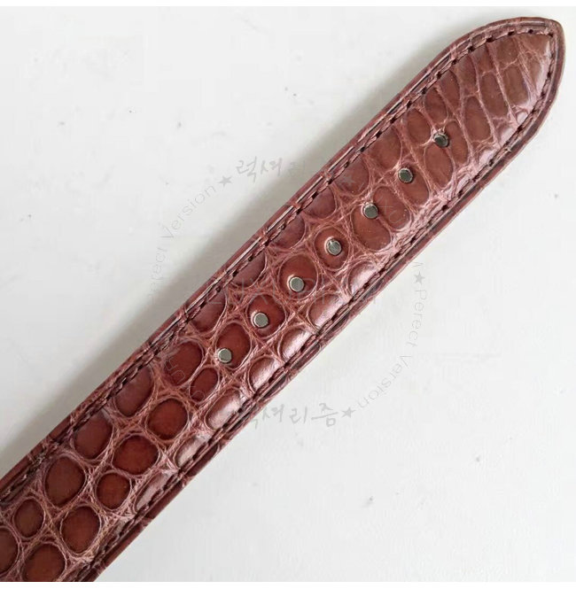 -스틸 핸즈 사파이어 크리스탈 원형 스케일 장식의 앨리게이터 가죽스트랩.
