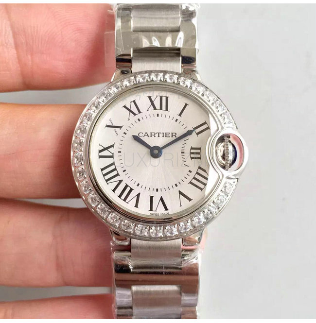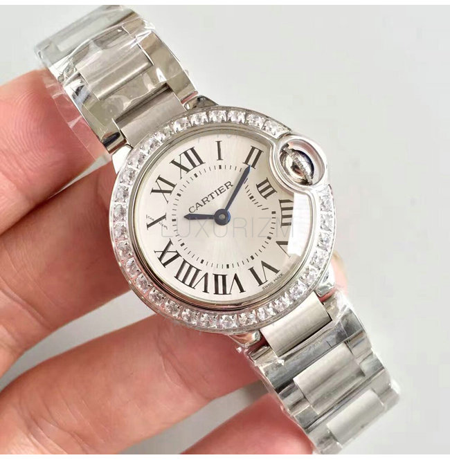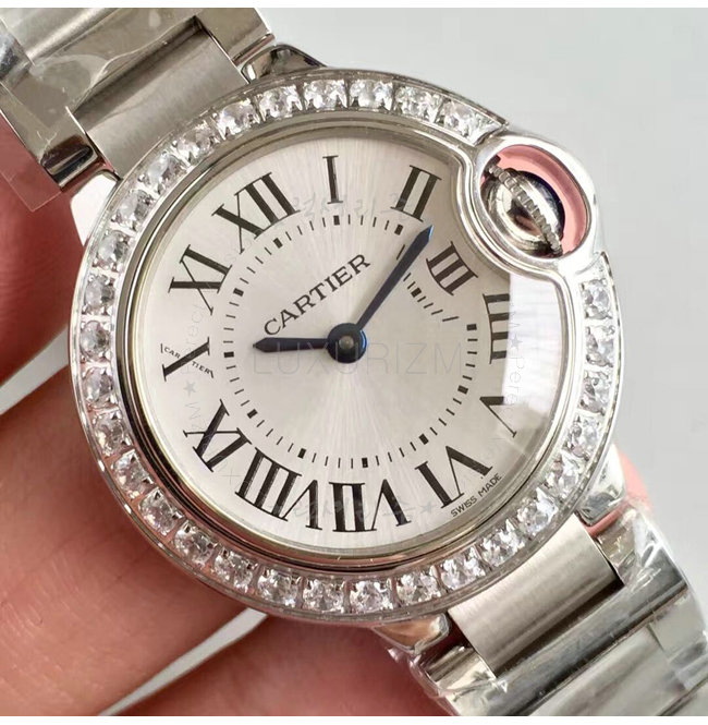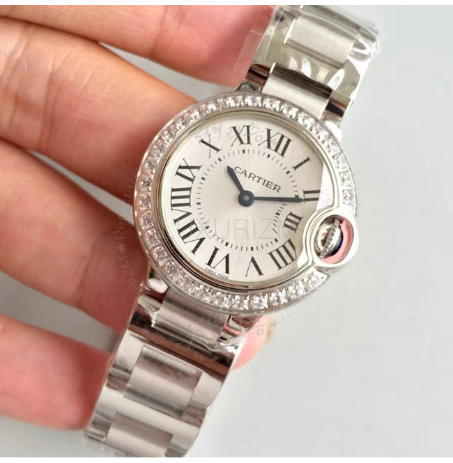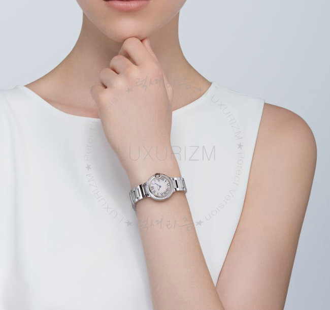 [스페셜오더]Cartier-WJBB0015 까르띠에 발롱 블루 드 쿼츠 다이아몬드 스틸 브레이슬릿 레이디스 워치 28mm