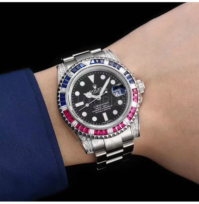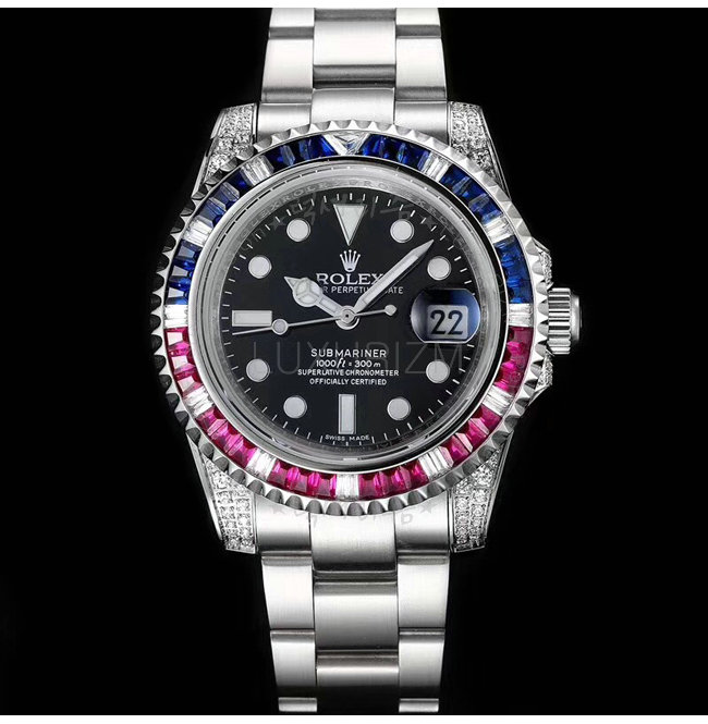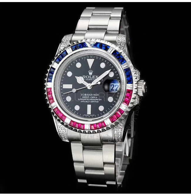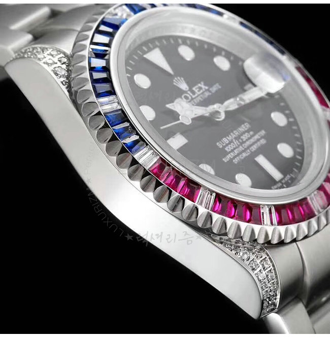 [스페셜오더]ROLEX-1888 롤렉스 오이스터 퍼페츄얼 서브 마리너 블루 핑크 사파이어 베젤 블랙 다이얼 스틸 워치 40mm
