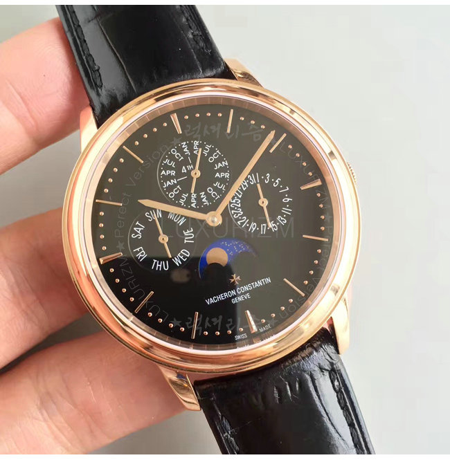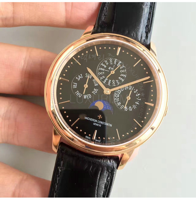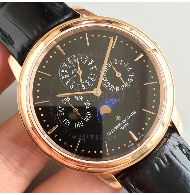[스페셜오더]Vacheron Constantin-바쉐론 콘스탄틴 패트리모니 퍼페추얼 캘린더 핑크 골드 블랙 다이얼 워치 41mm