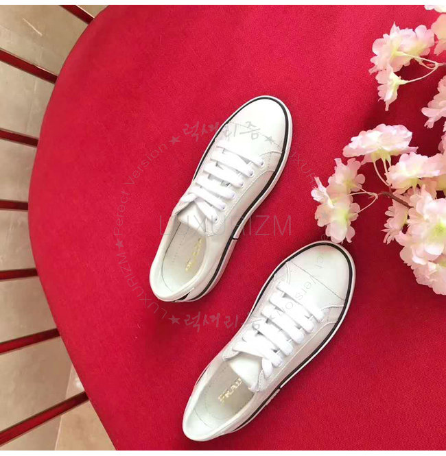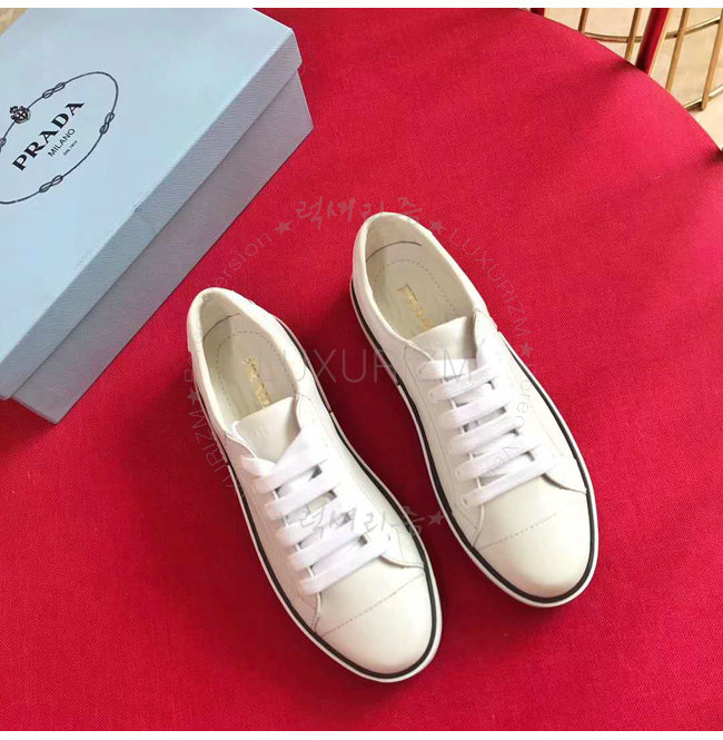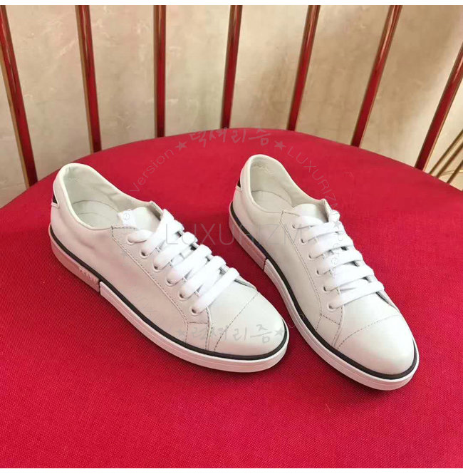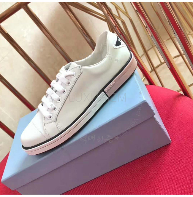 PRADA-1E347I 프라다 송아지 가죽 Prada 로고 패치 화이트 스니커즈