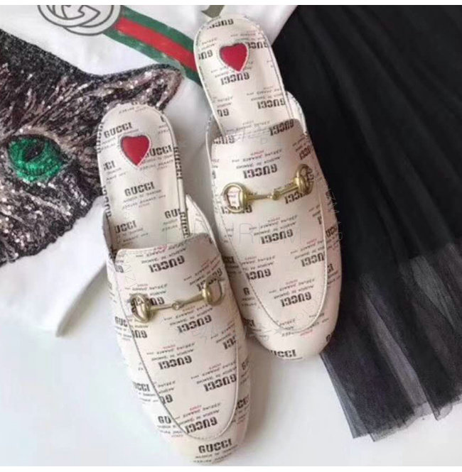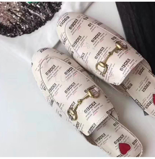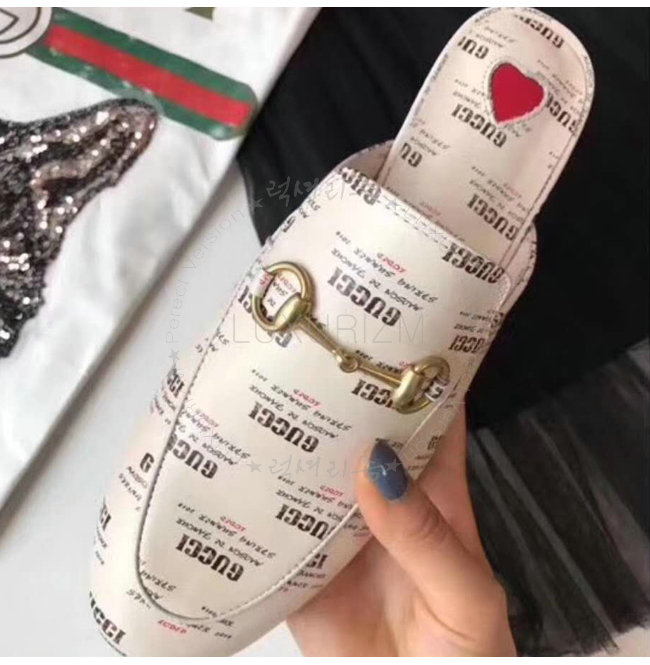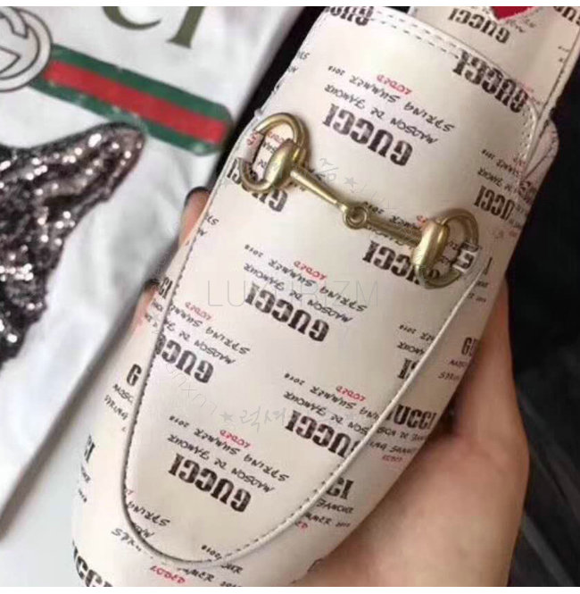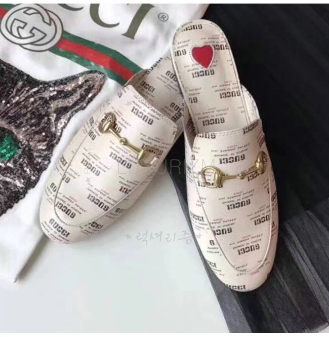 GUCCI-505511 9355 구찌 프린스타운 구찌 스탬프 프린트 가죽 슬리퍼