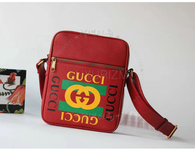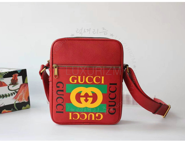 [스페셜오더]GUCCI-523591 6461 구찌 레드 가죽 구찌 프린트 메신저 백
