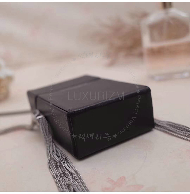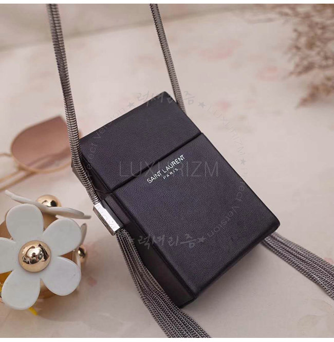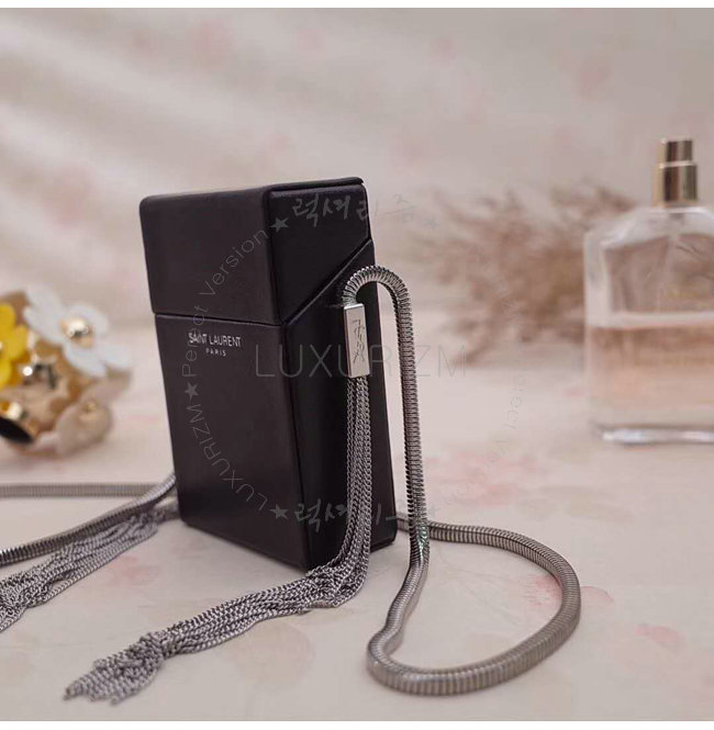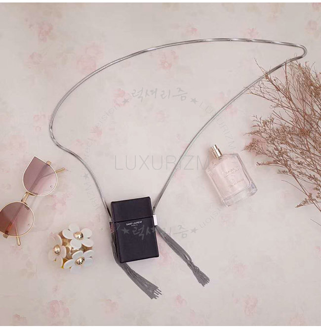 체인 YSL 시그니처가 새겨진 2개의 측면 태슬 디테일의 시가렛 박스.