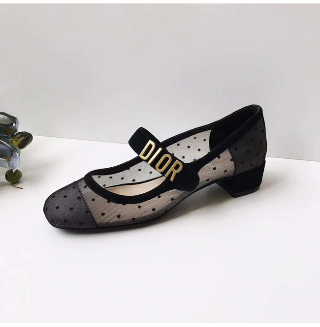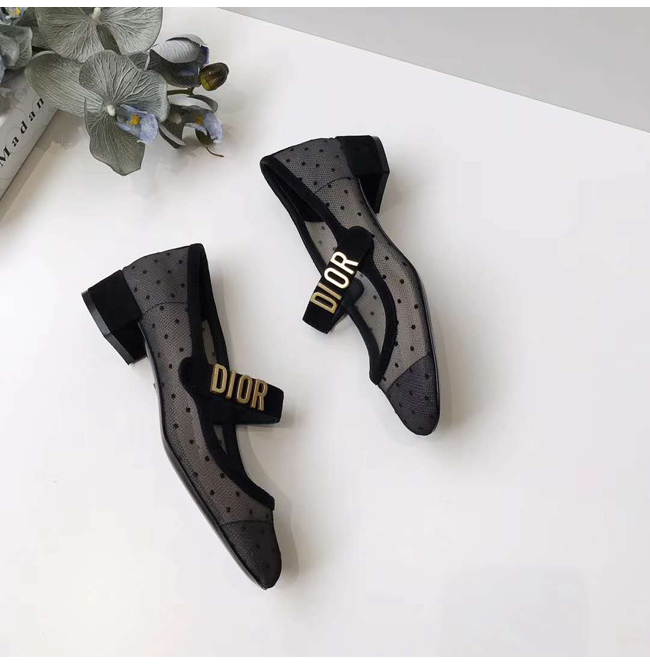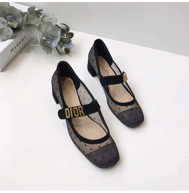 DIOR-KCB058 디올 블랙 도티드 스위스 DIOR BABY-D 발레리나