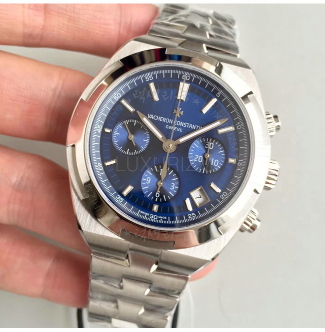 [스페셜오더]Vacheron Constantin-바쉐론 콘스탄틴 오버시즈 크로노그래프 스틸 블루 다이얼 브레이슬릿 워치 42.5mm
