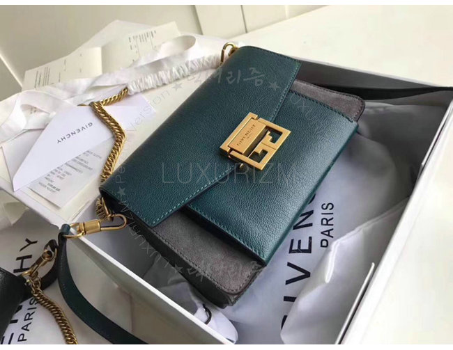 [스페셜오더]GIVENCHY-BB501CB 지방시 카프스킨 아쿠아 GV3 스몰 숄더스트랩 플랩 백