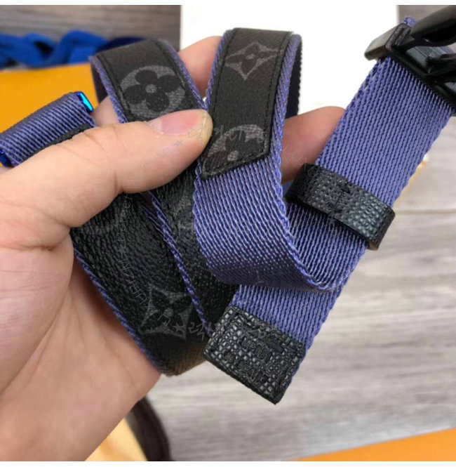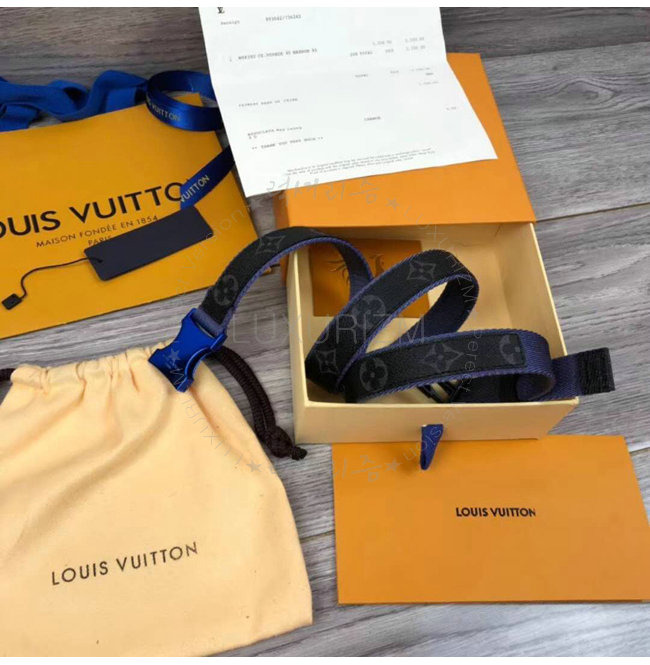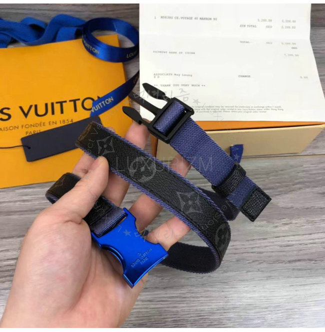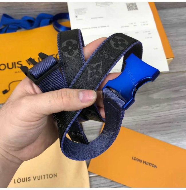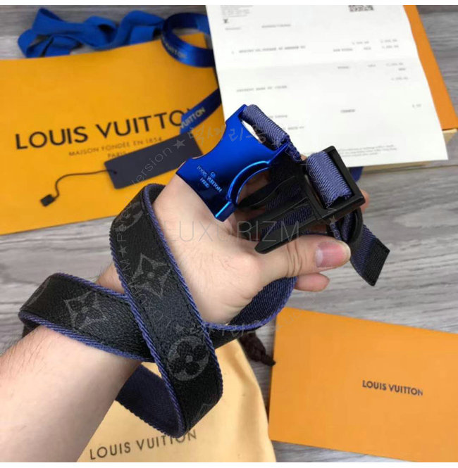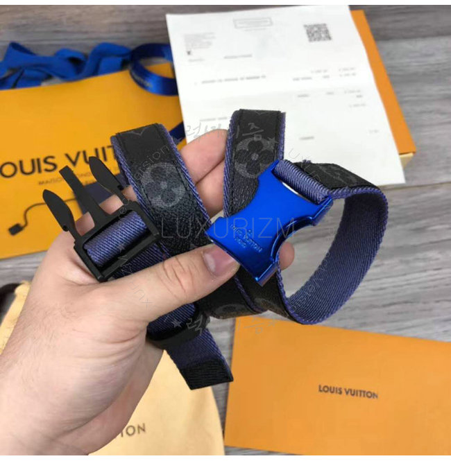 모노그램 이클립스 및 웨빙 조작이 쉬운 클립 버클에 각인한 Louis Vuitton 시그니처.