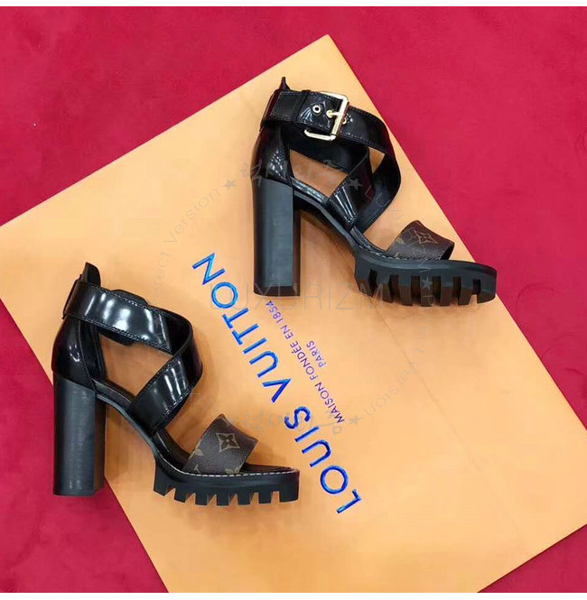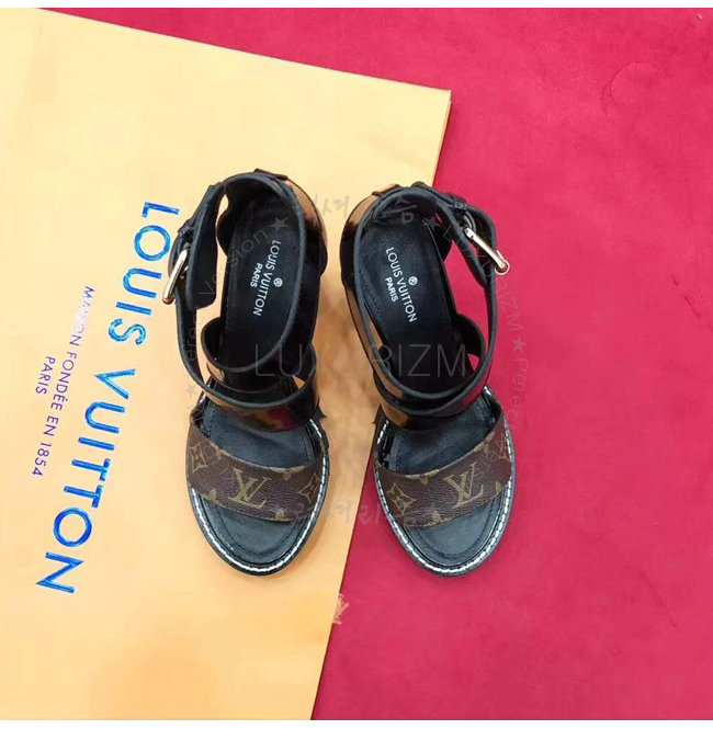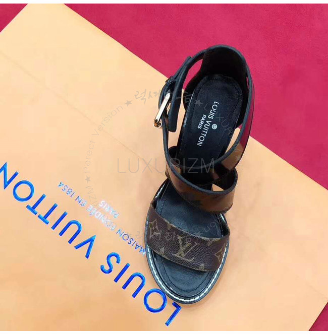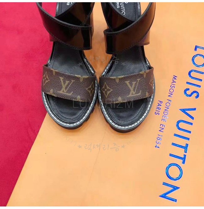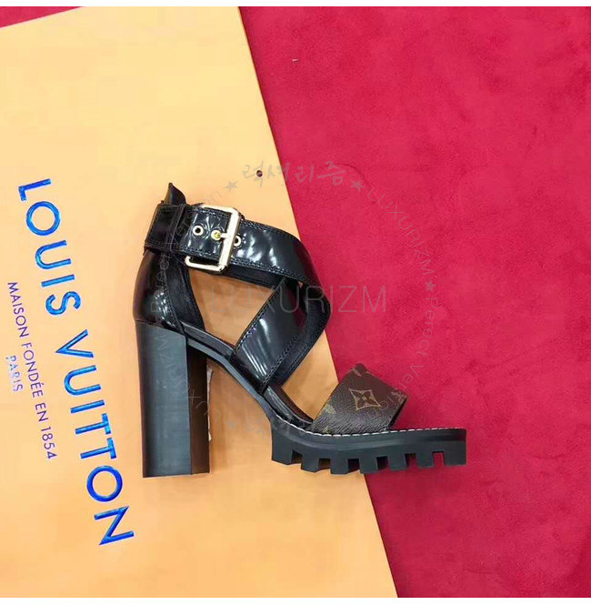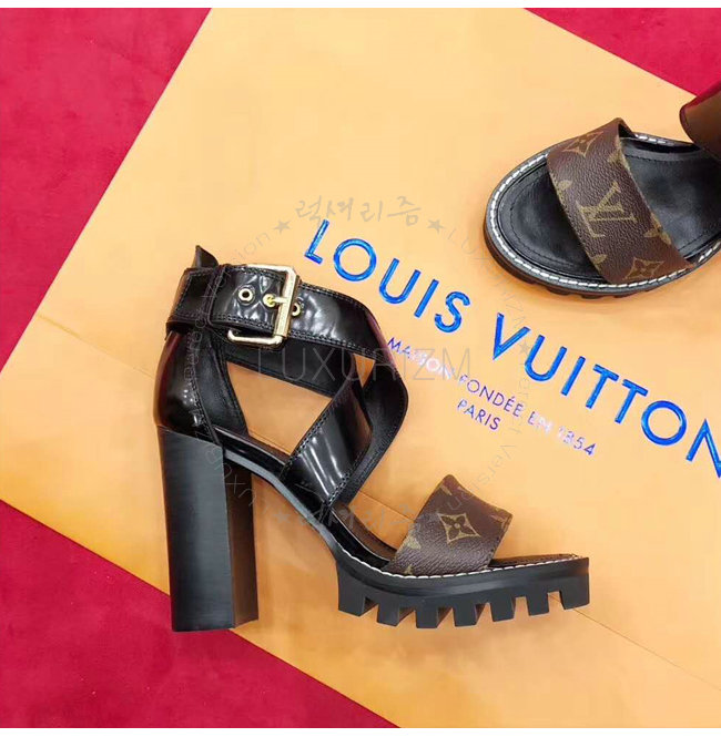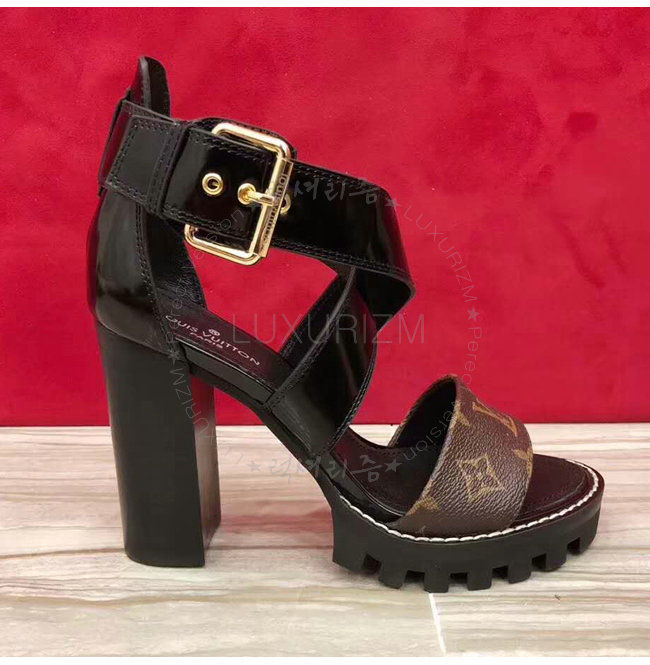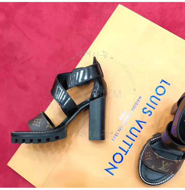 LOUIS VUITTON-1A3Y1V 루이비통 플레인 송아지 가죽 모노그램 캔버스 스타 트레일 하이힐 샌들