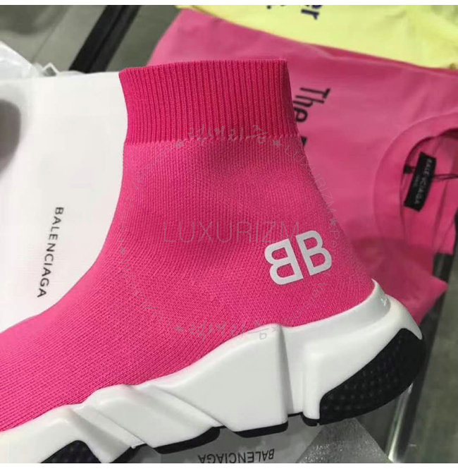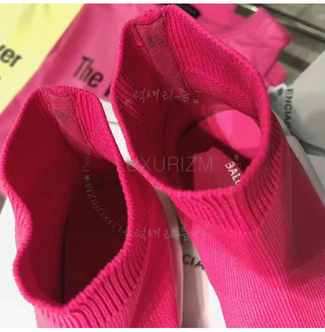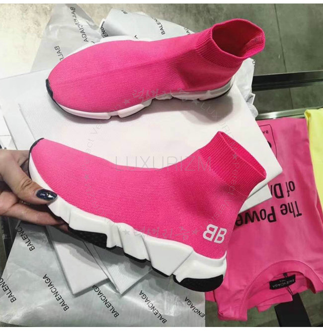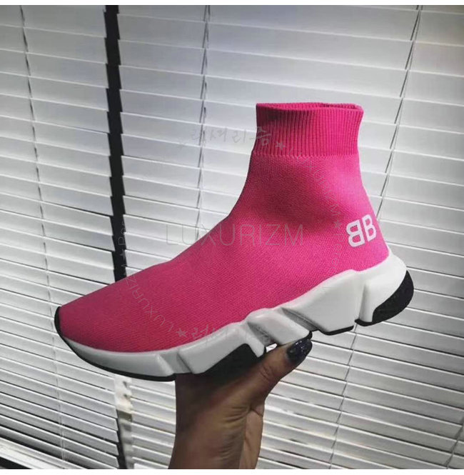 BALENCIAGA-518767 발렌시아가 BB 로고 네온 핑크 니트 스피드 트레이너