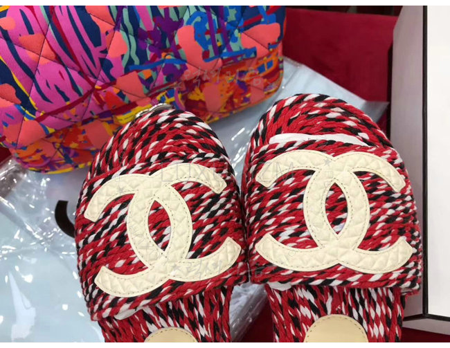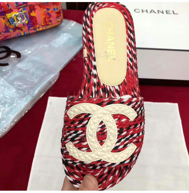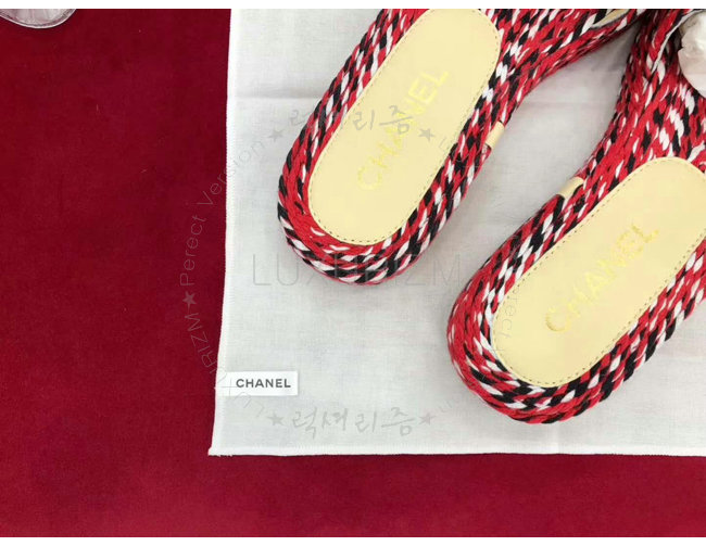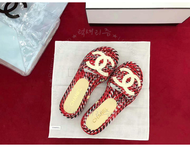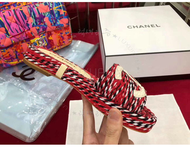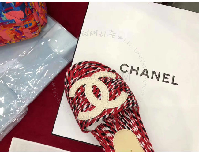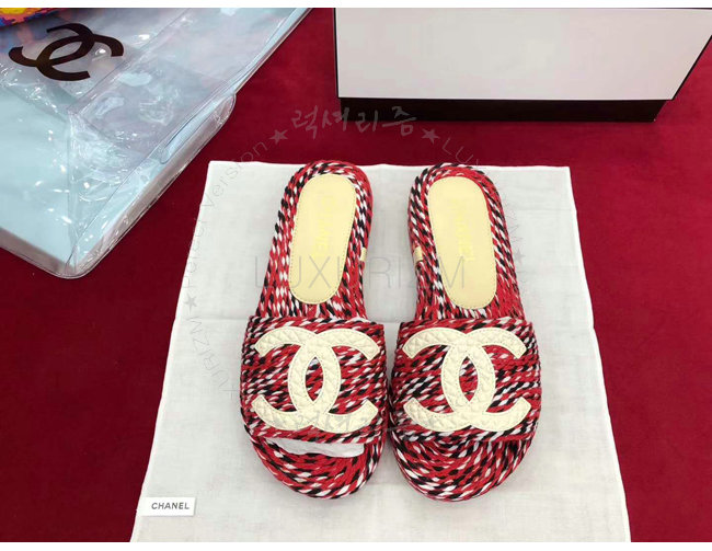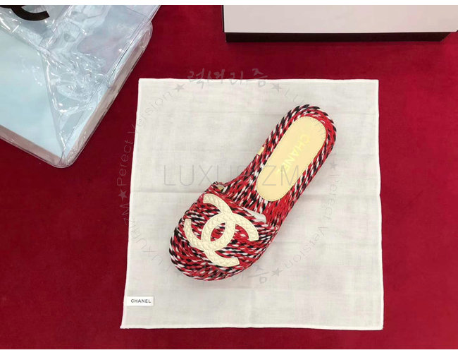 CHANEL-G33588 샤넬 코드 가죽 로고 장식 레드 뮬