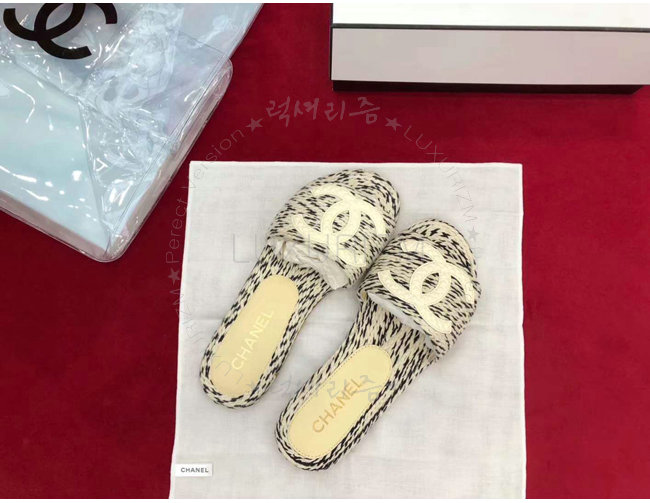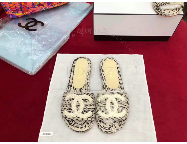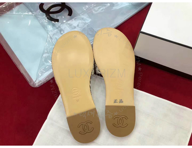 CHANEL-G33587 샤넬 코드 가죽 로고 장식 아이보리 뮬