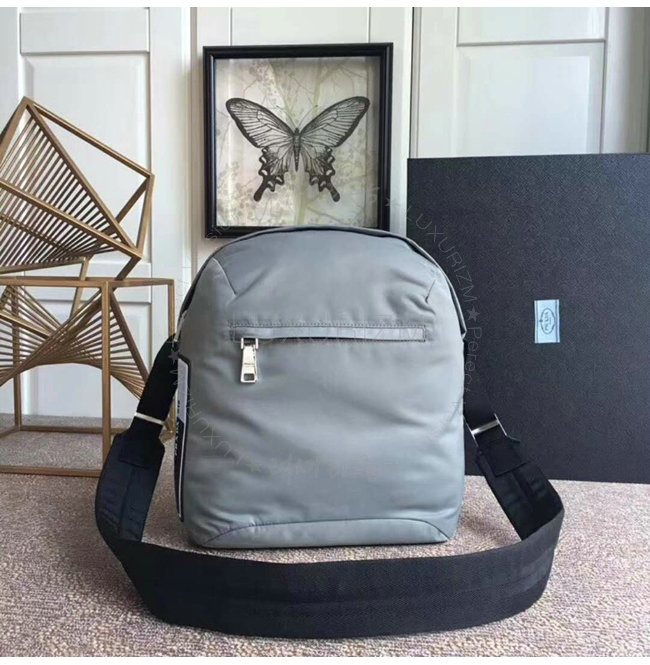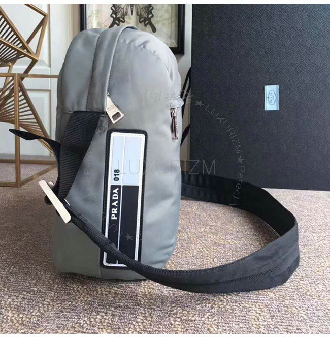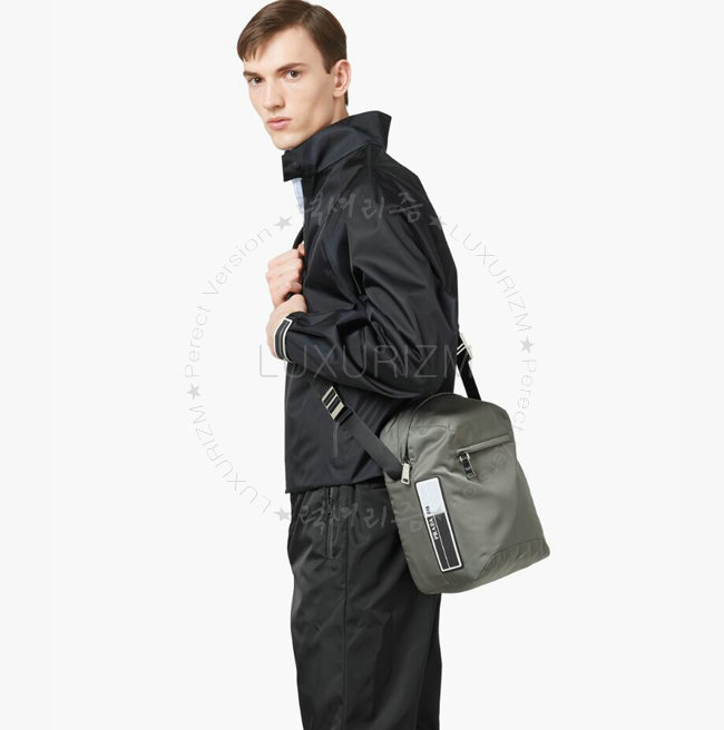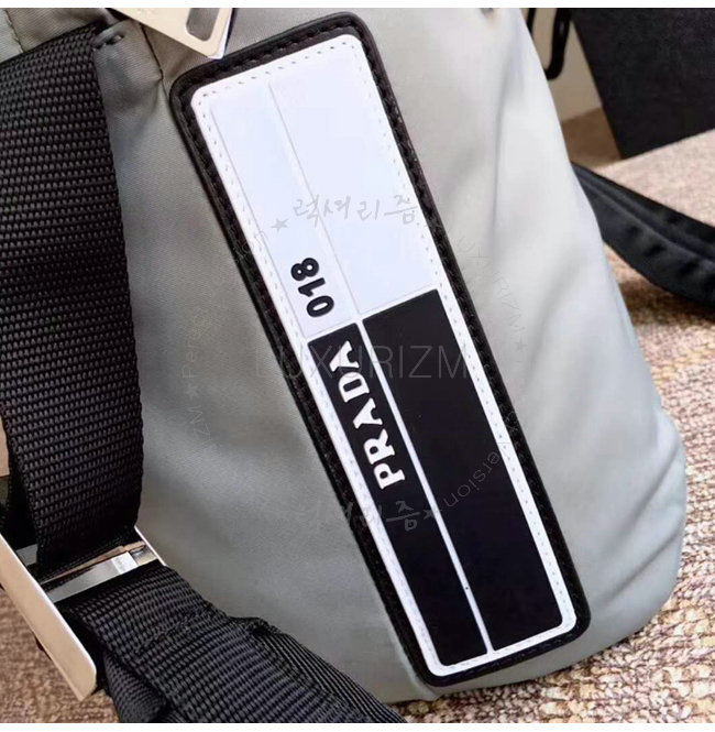 [스페셜오더]PRADA-2VH026 프라다 기능성 페브릭 외부 고무 로고 그레이 밴돌리어 백