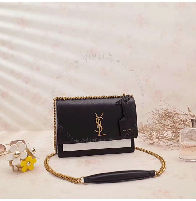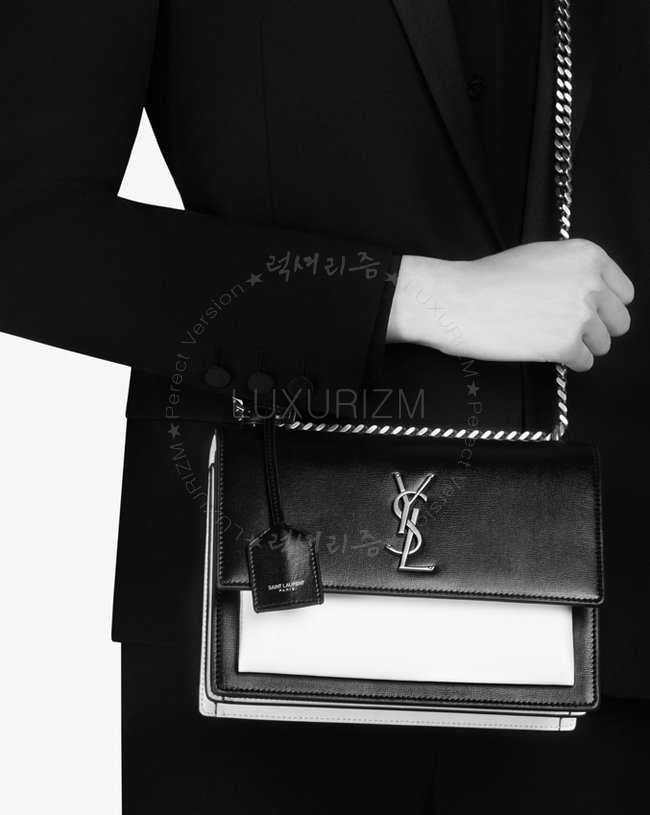 [스페셜오더]SAINT LAURENT-442906 생 로랑 송아지 가죽 블랙 펄 화이트 미디엄 선셋 백